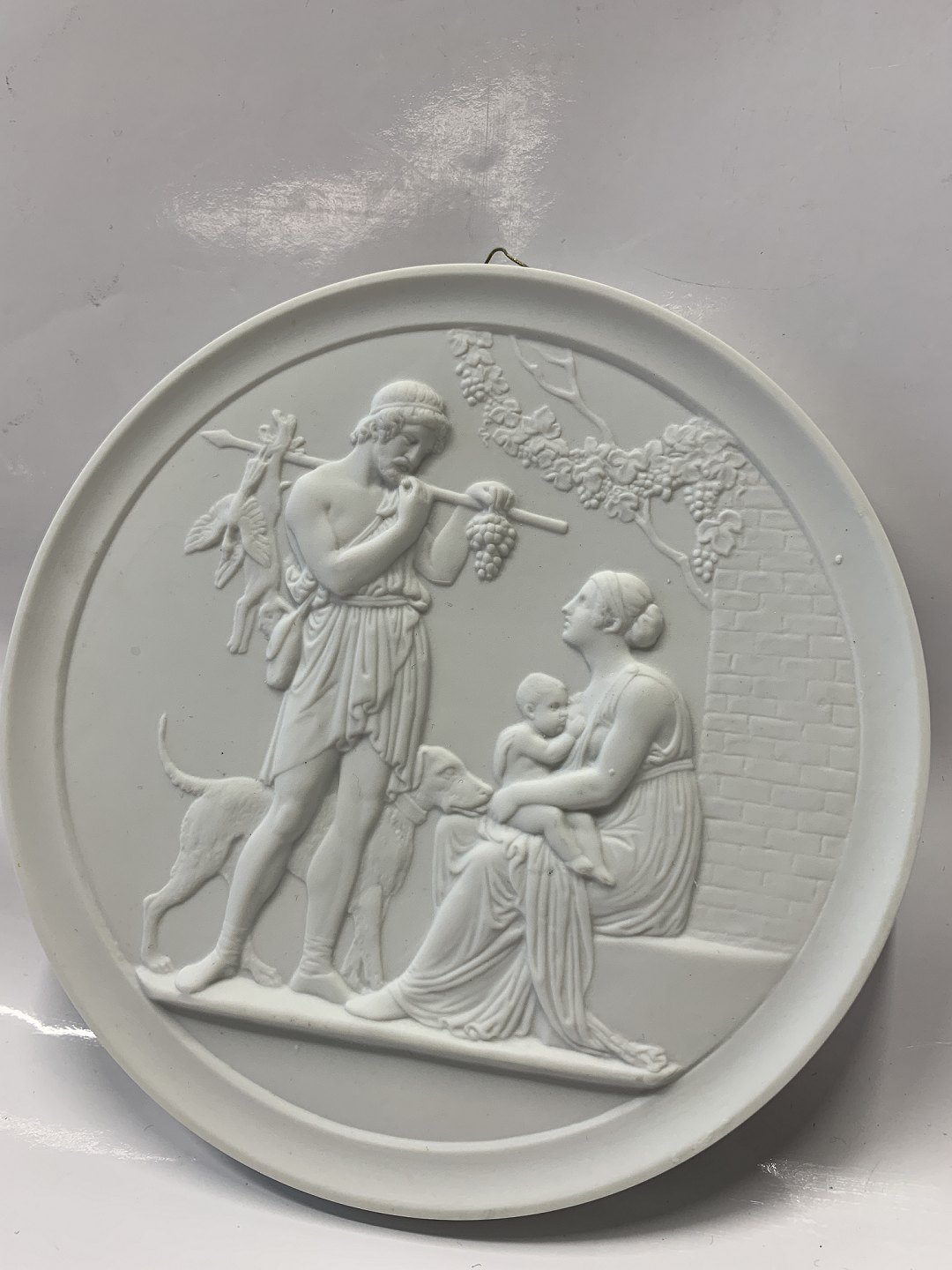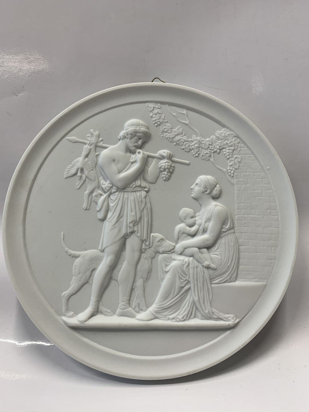 Royal Copenhagen Bisquit platte af Thorvaldsen "Mandom og efterår"