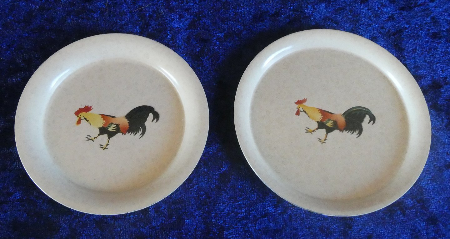 Likörschale mit weißem Hahn und Glastablett mit Hahn.