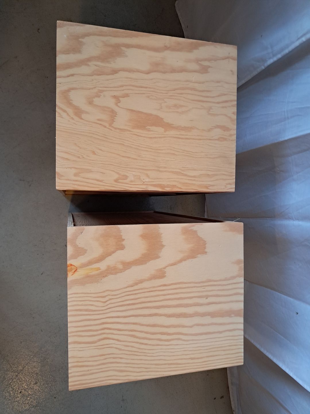 2 Reolkasser i krydsfiner, fra 2000erne.