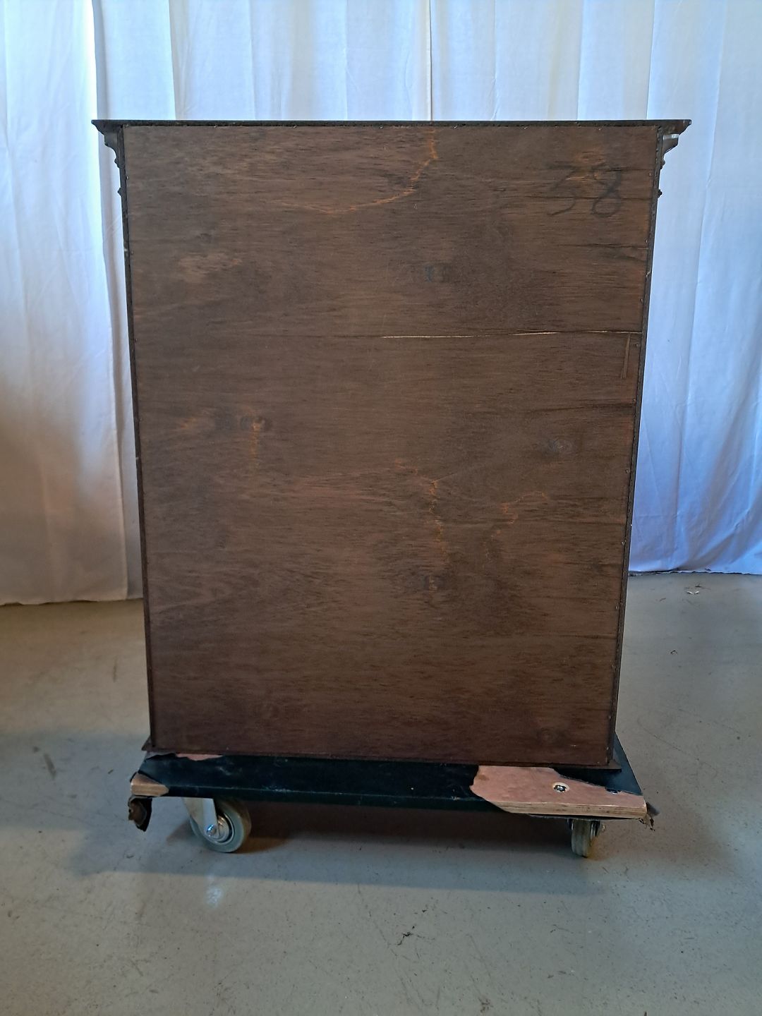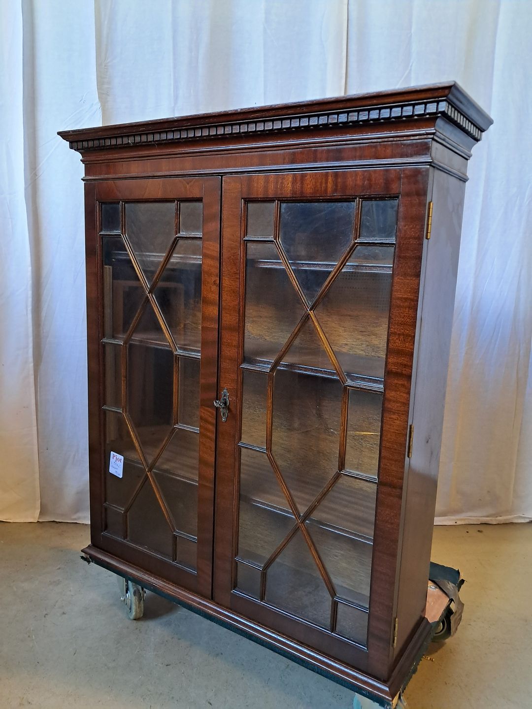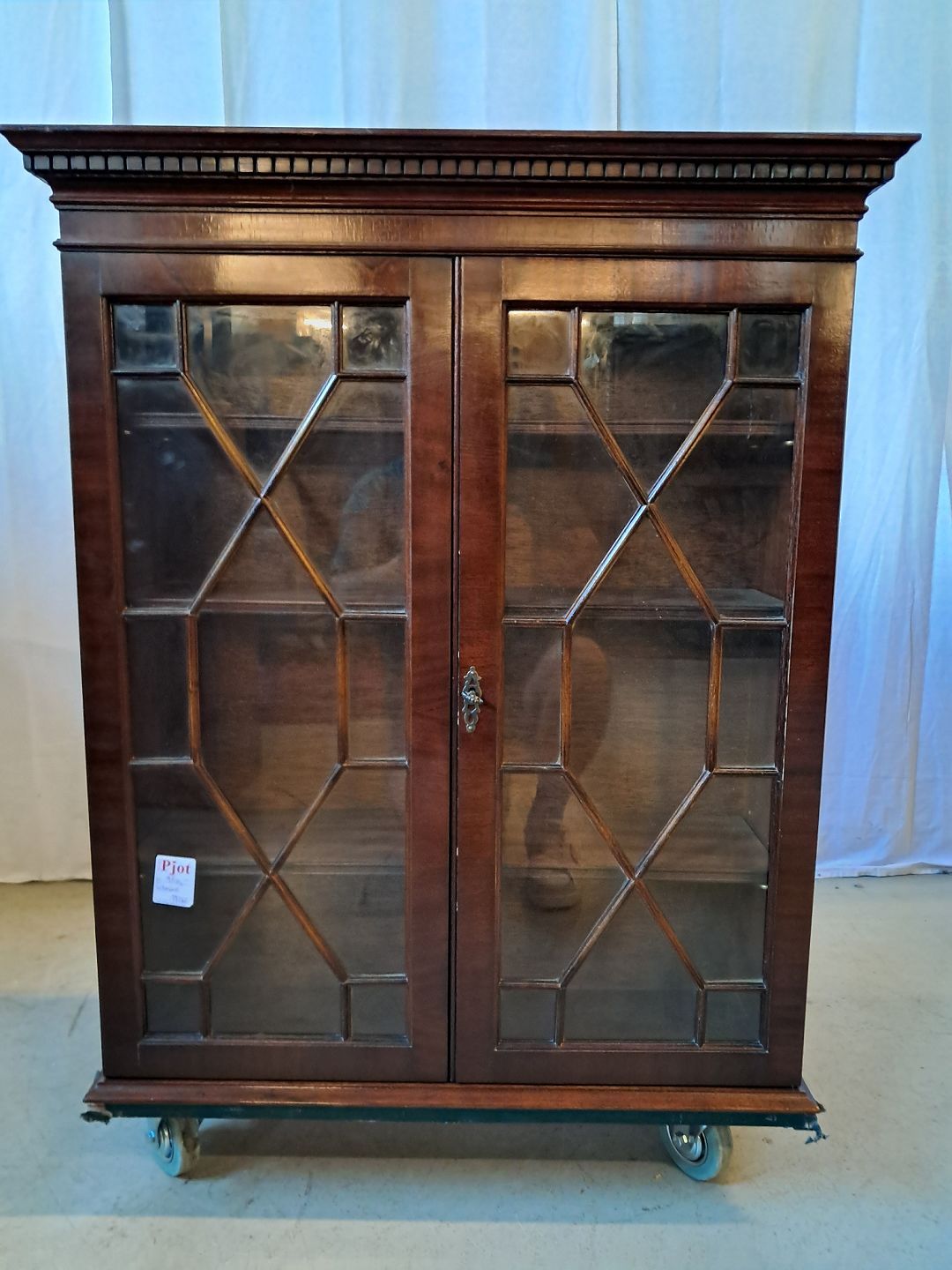 Vitrineskab i fineret mahogni, fra 1980erne.
