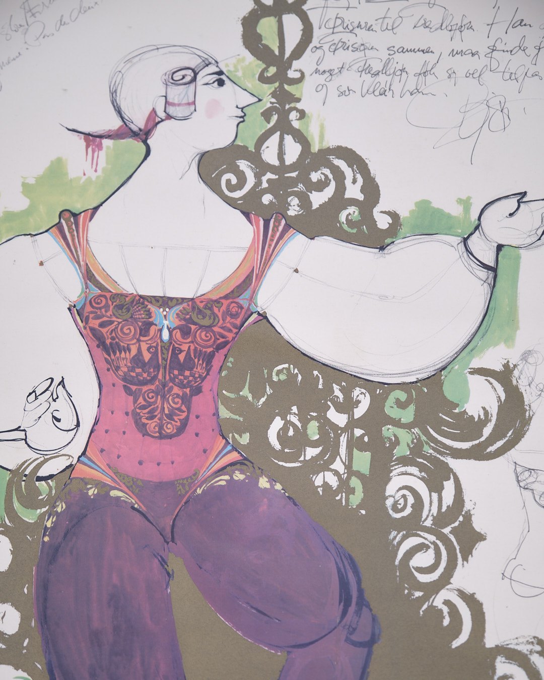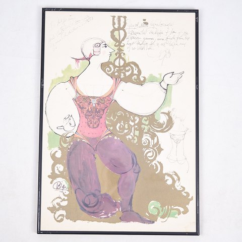 Litografisk tryk signeret af Bjørn Wiinblad. Indrammet i sort ramme med karakteristisk dekorativt motiv.