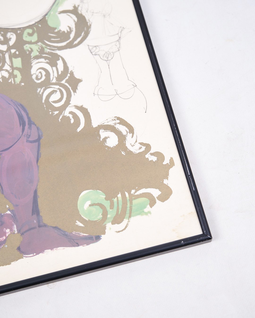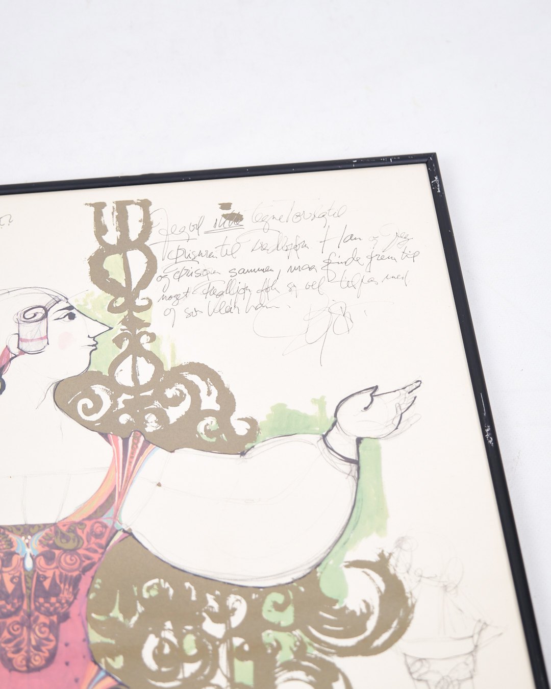 Litografisk Tryk I Sort Ramme - Signeret Af Bjørn Wiinblad