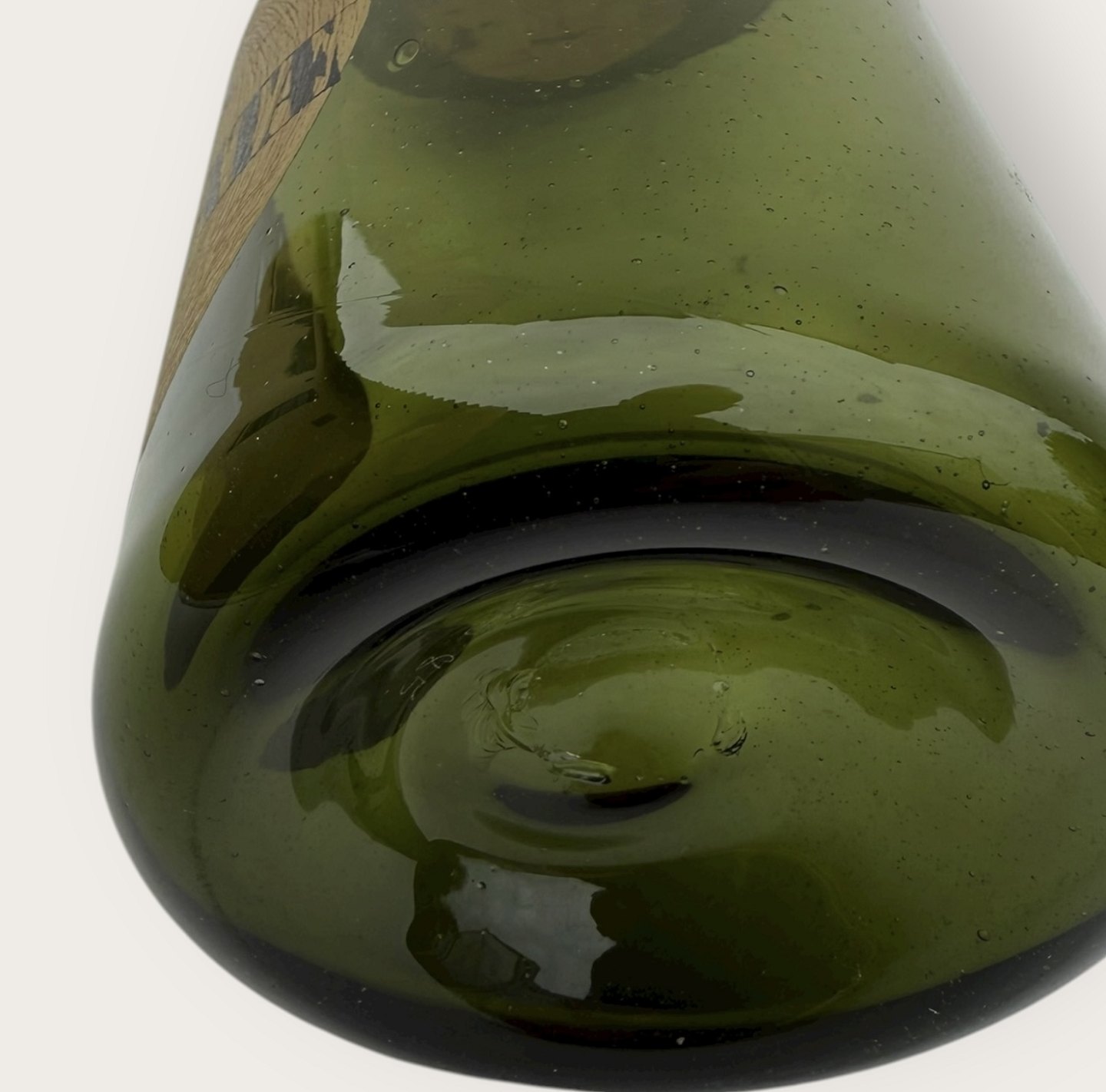 Holmegaard Apothekerflasche von 1985, Nuces Moschatæ (Muskatnuss), Maße: 18x8cm, die Flaschen sind mundgeblasene Kopien von originalen alten Apothekerflaschen, signiert Hg85.