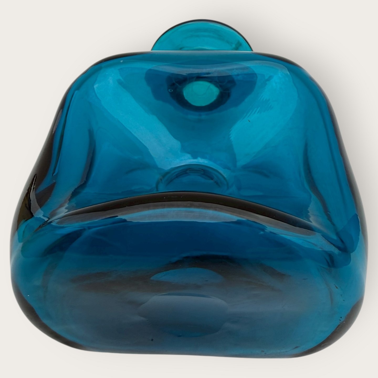 Kastrup Glashütte, Blaue Glucksflasche mit flachem, klarem Stopfen, 19 x 11 x 7 cm *schöner gebrauchter Zustand*