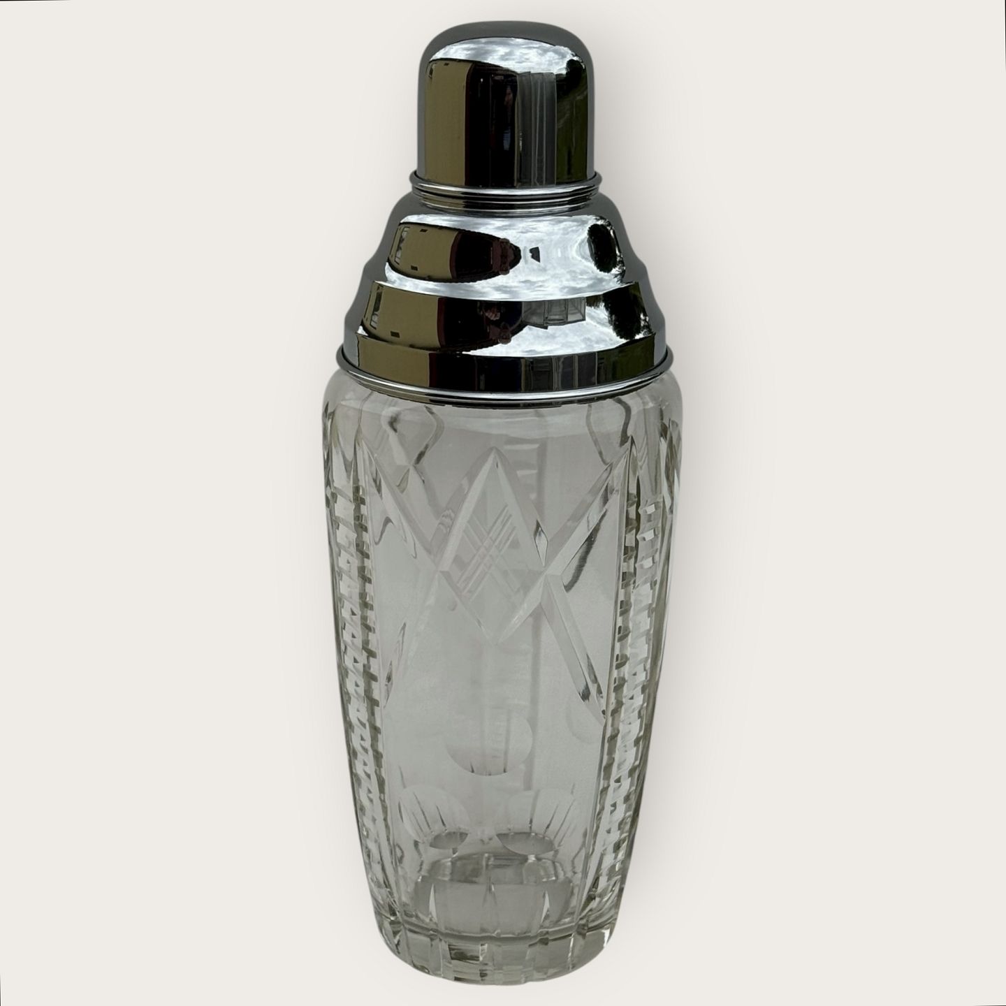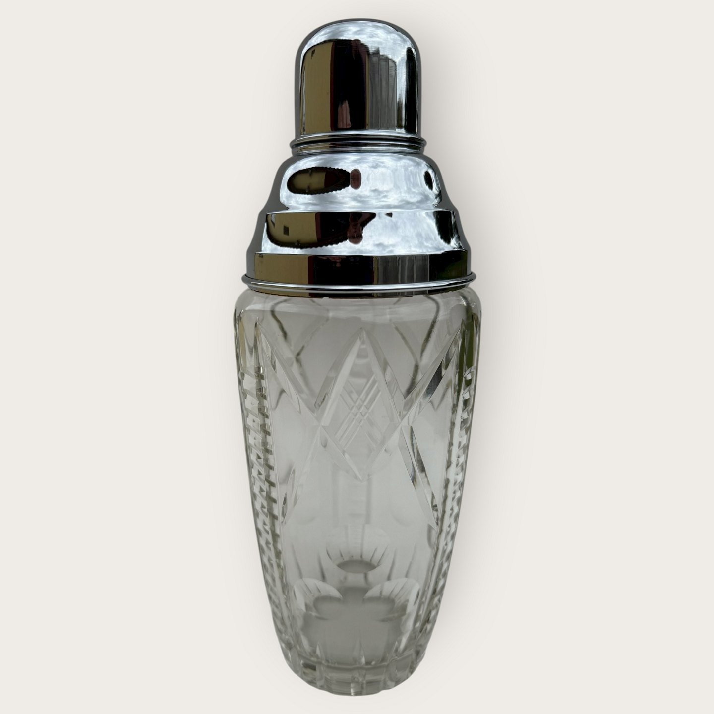 Älterer Cocktailshaker aus dickem Glas und mit vielen Schliffen, Höhe 25cm, toller Zustand