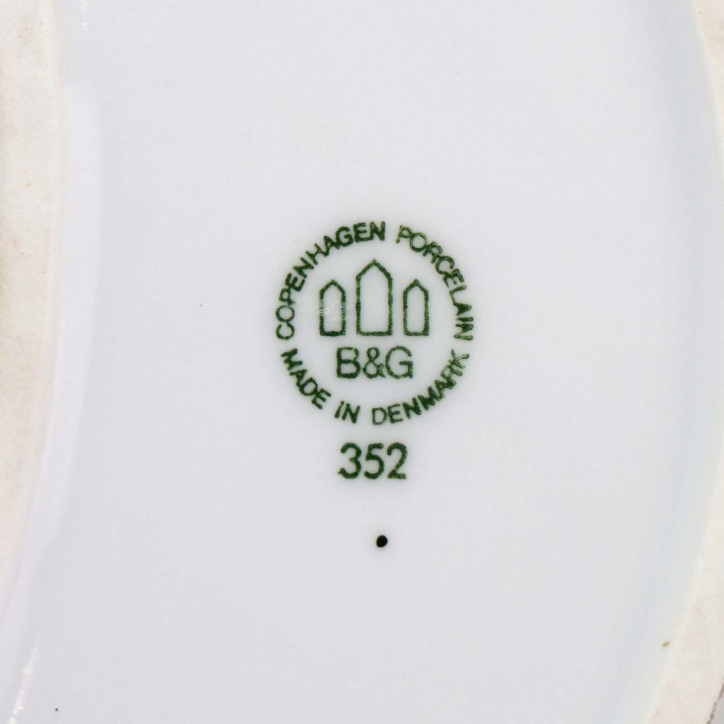 Halvmåneformet fad i porcelæn fra stellet Klitrose. Nr. 352