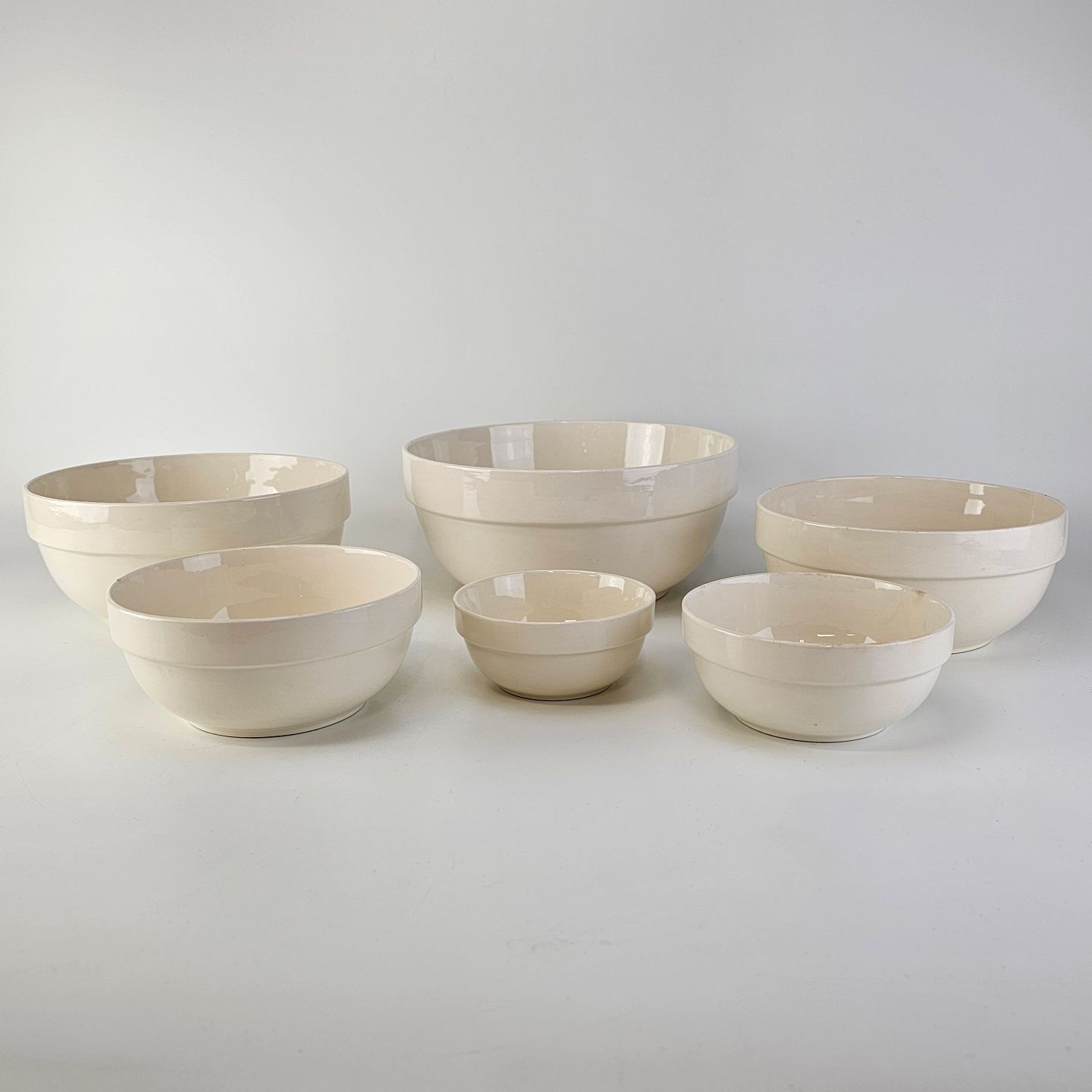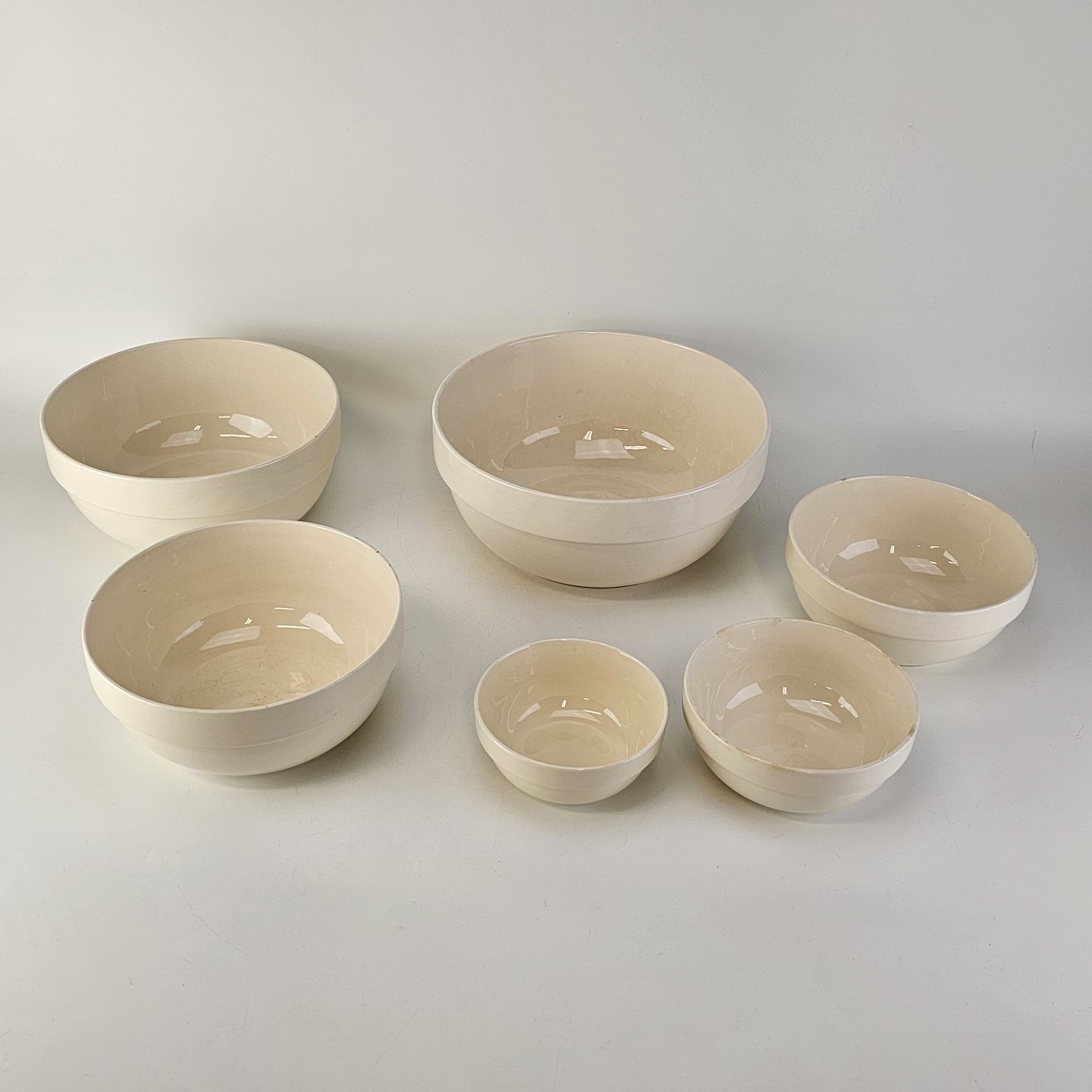 Text zugänglich auf Dänische: Sæt med seks skåle i cremefarvet fajance fra stellet Alma