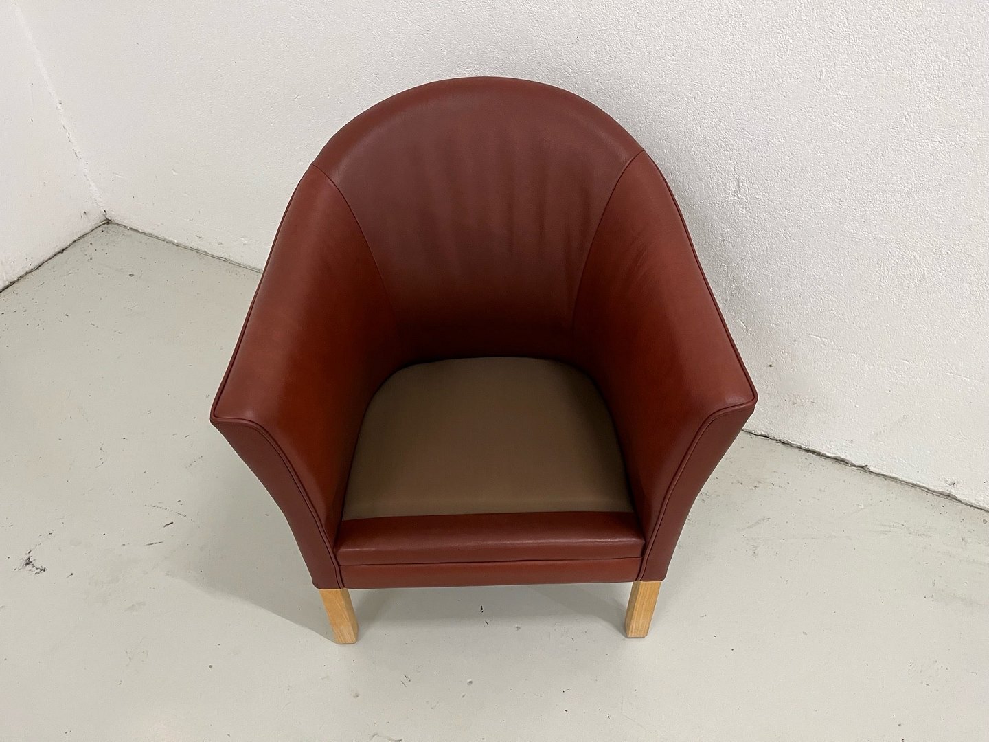 Mogens Hansen MH 80 Sessel, entworfen vom Architekten, mit Gefion-Leder in Cognac und Beinen aus Buche. Neupreis 18.989,-. Der Sessel ist in sehr gutem Zustand und wurde nur sparsam benutzt, gereinigt und mit Lederpflege behandelt. 2 Stück auf Lager, fragen Sie nach weiteren Details. Schöner und eleganter Sessel von Mogens Hansen. Der Sessel hat nicht nur ein schönes Design, sondern auch einen wirklich guten Sitzkomfort. Hier können Sie stundenlang erstklassigen Komfort genießen, während Sie nach einem langen Tag entspannen oder ein gutes Buch lesen. Mit seinem stilvollen Design ist der Sessel eine zeitlose Ergänzung für jedes Interieur.Design: Mogens HansenMaterial: Beine: BucheLeder: Gefion-Leder CognacMaße: Gesamthöhe: 85 cmSitzhöhe: 45 cmBreite: 75 cmTiefe: 72 cmUnser Konzept. Ankauf neuerer/gebrauchter Möbel. Gründliche Reinigung und Behandlung. Besichtigung nach Vereinbarung. Kostenlose Lieferung in ganz Dänemark bis zur Bordsteinkante.