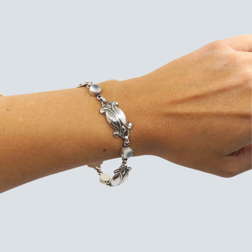 Georg Jensen; "Moonlight Blossom" armbånd af sterling sølv med månesten.