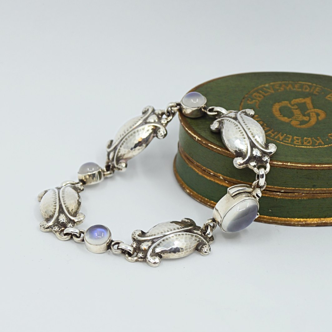 Text zugänglich auf Dänische: Georg Jensen; "Moonlight Blossom" armbånd af sterling sølv med månesten, nr. 11