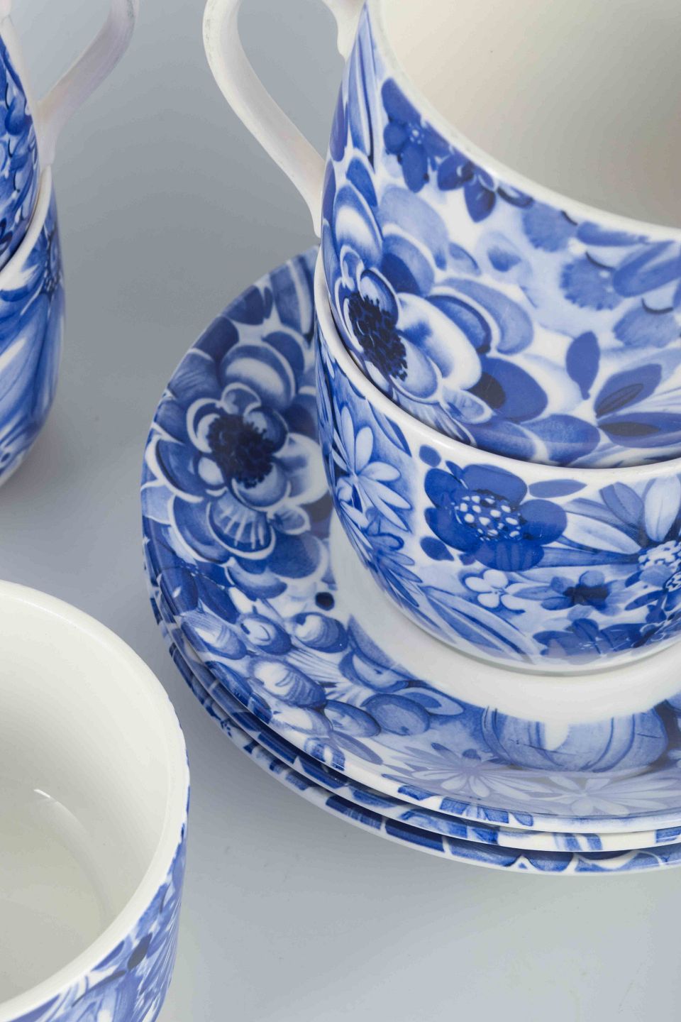 Gefle Porcelainsfabrik var en af Sveriges mest markante porcelænsproducenter i midten af 1900-tallet og kendt for sine elegante blå/hvide stel. Serien Blå Blomster er et klassisk eksempel på skandinavisk mid-century design med rene former og delikate, håndmalede dekorationer. I dag er stellet meget eftertragtet blandt samlere og elskere af nordisk keramik.