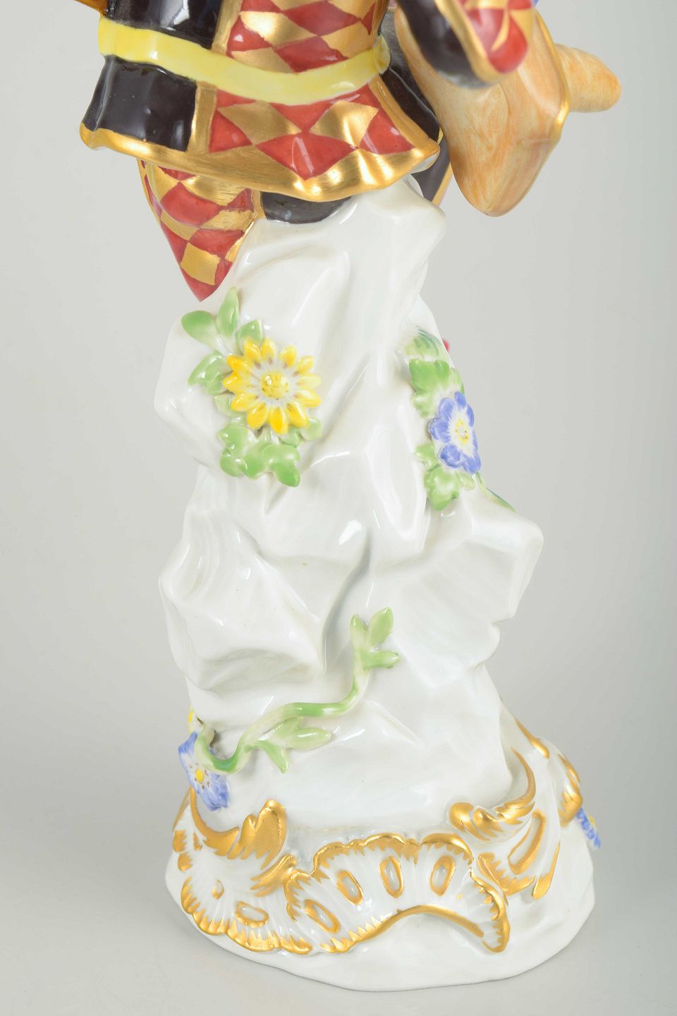Meissen er verdens ældste og mest prestigefyldte porcelænsfabrik, grundlagt i 1710 under protektion af August den Stærke. Figuren af Harlekin er en hyldest til den populære italienske Commedia dell’arte-tradition, som har inspireret europæisk kunst og teater siden 1600-tallet. De livlige farver, dramatiske positurer og den overdådige udsmykning gør figurerne til ikoniske samlerobjekter.