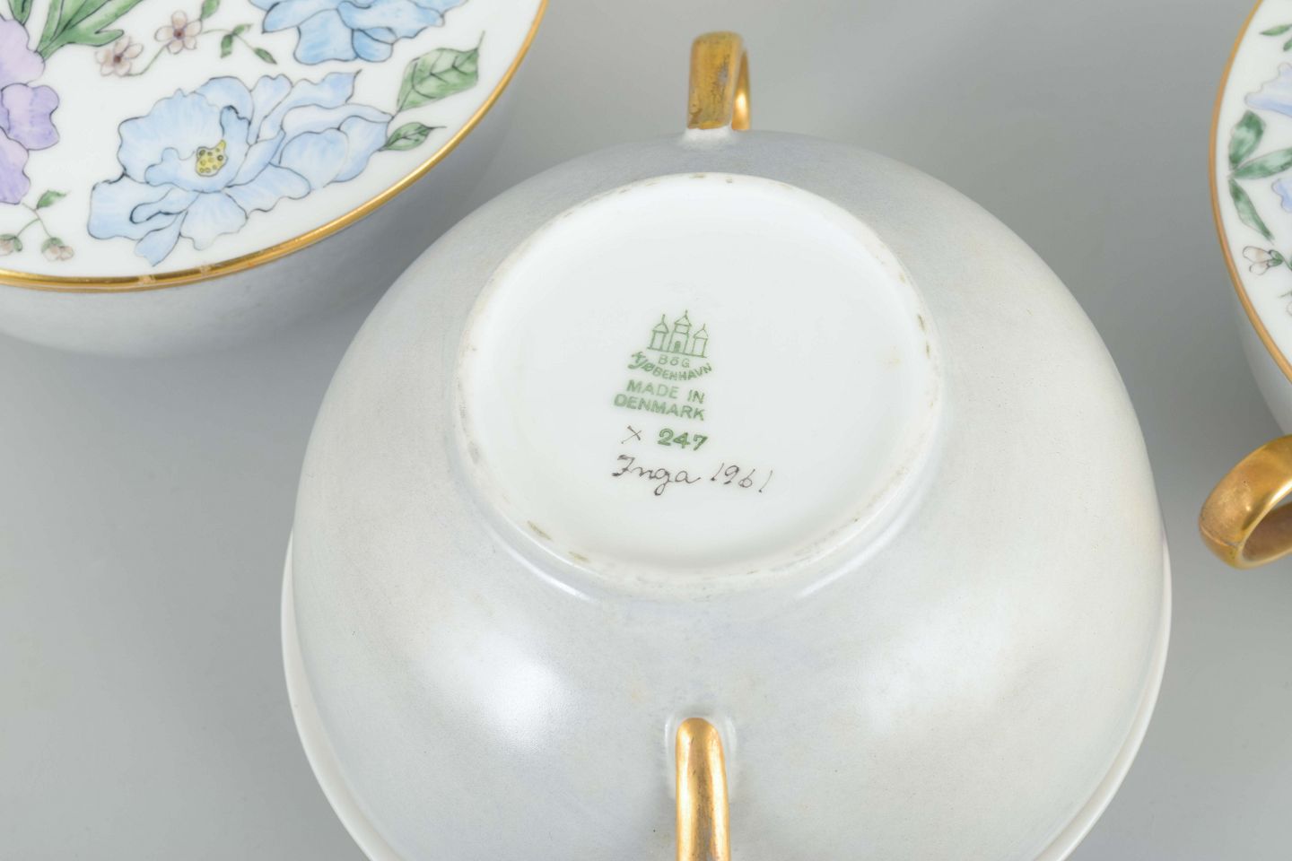 Bing & Grøndahl var en af Danmarks mest anerkendte porcelænsfabrikker, grundlagt i 1853 i København. Fabrikken er kendt for sine fine håndmalede dekorationer og elegante formsprog. Disse bouillonkopper fra 1960’erne repræsenterer klassisk dansk porcelænstradition kombineret med et tidstypisk blomsterdekoreret udtryk. De er i dag eftertragtede blandt samlere og porcelænselskere.