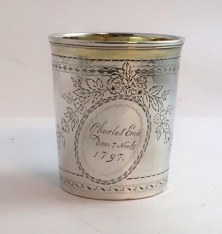 Lorenz Christophersen Linde, geboren in Bergen. Kopenhagen nach 1786 und gestorben 1809. Silberpokal mit Vergoldung. Höhe 7,6 cm. Durchmesser 7 cm.
