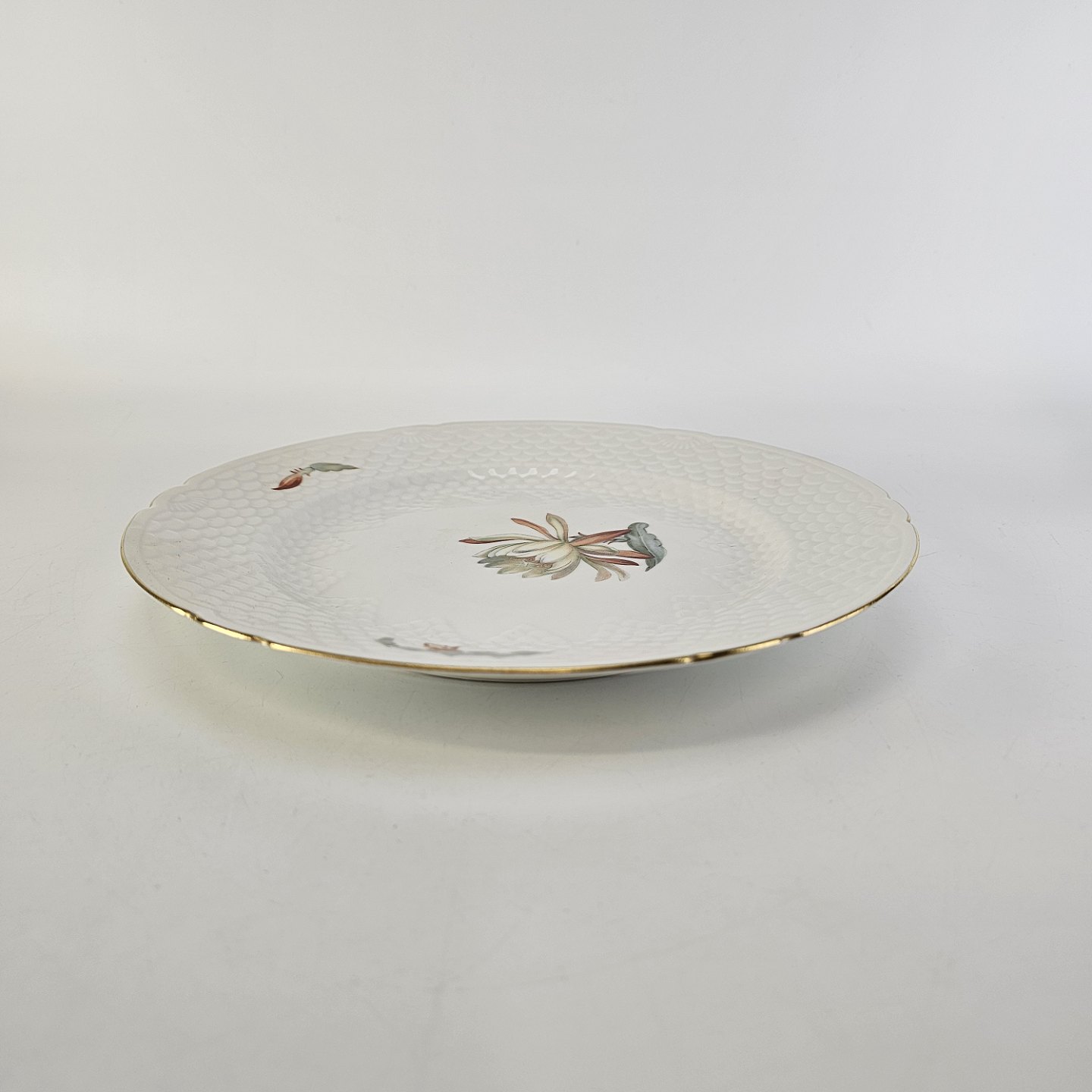 Kaktus er cremefarvet porcelæn i skælform, dekoreret med kaktusblomster og guldkant