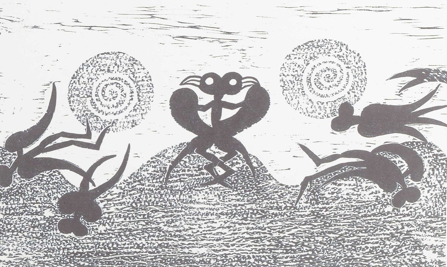 Et poetisk og fabulerende motiv med surrealistiske figurer i bevægelse, hvor legende og drømmeagtige elementer danner en rytmisk og humoristisk komposition. Zielers karakteristiske billedsprog forener mytiske undertoner med en let og fabulerende fortælleform.