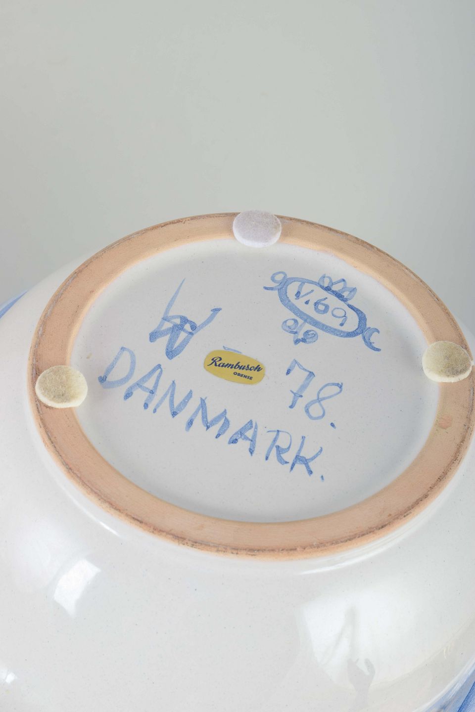 Bjørn Wiinblad var en dansk kunstner, keramiker og designer, kendt for sine fantasifulde og dekorative universer. Samarbejdet med Rambusch i Odense resulterede i en række keramiske værker med håndmalede dekorationer, ofte i blå på hvid bund. Produktionen var relativt begrænset og er i dag eftertragtet af samlere, der værdsætter kombinationen af dansk håndværk og Wiinblads karakteristiske formsprog.