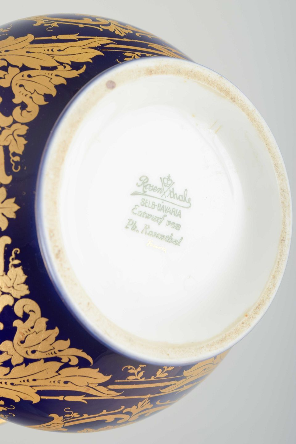 Rosenthal, grundlagt i Selb, Bayern i 1879 af Philipp Rosenthal, er kendt som en af Tysklands mest prestigefyldte porcelænsproducenter. Særligt i midten af det 20. århundrede blev Rosenthal berømt for at kombinere klassiske traditioner med luksuriøs dekoration, ofte med kobolt og guld. Disse vaser blev fremstillet både som prydgenstande og som samlerobjekter, og repræsenterer tysk porcelænskunst af høj kvalitet.