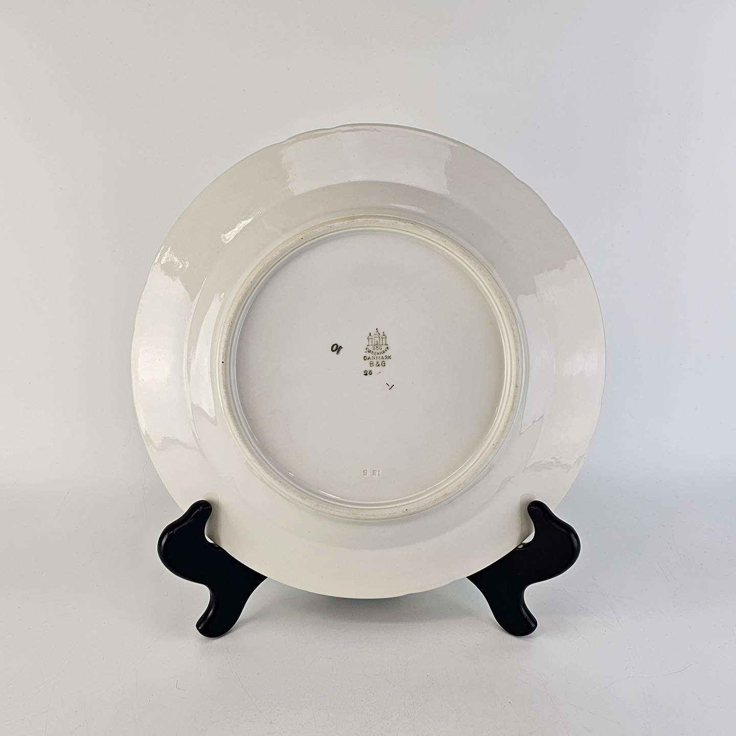 Balder er cremefarvet porcelæn i skælform, dekoreret med hyben og guldkant.