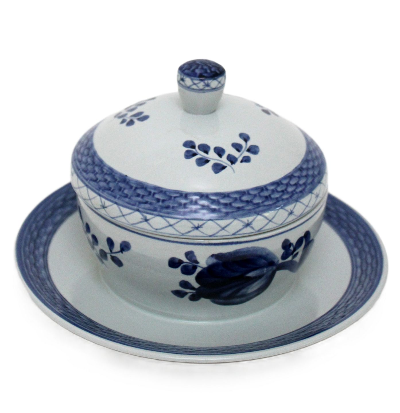 Smørskål med låg og fast underfad, Tranquebar, Aluminia