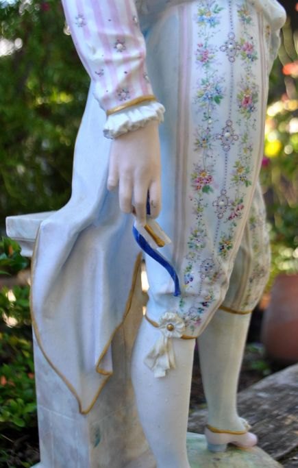 Große Biskuitporzellanfigur eines jungen Mannes, 19. Jahrhundert. Armand Marseilles, Deutschland. Kalt bemaltes und vergoldetes Porzellan. Gestempelt. H: 55,5 cm.