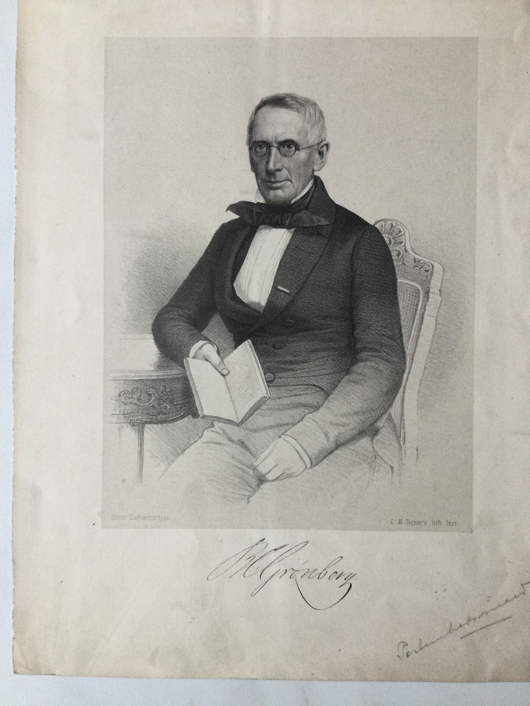 Text zugänglich auf Dänische: Litografi af C.M. Tegner - Portræt af Forfatteren Bendt Christian Grønberg (1791-1864).