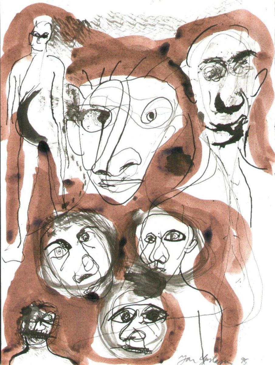 Gislason, Jon (1955-). Komposition. Aquarell und Tusche auf Papier. Schild. Jon Gislason 95. 32,5 x 24,5 cm.