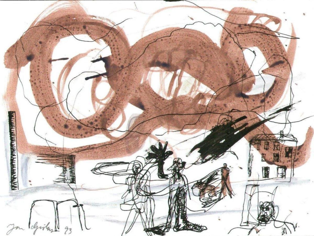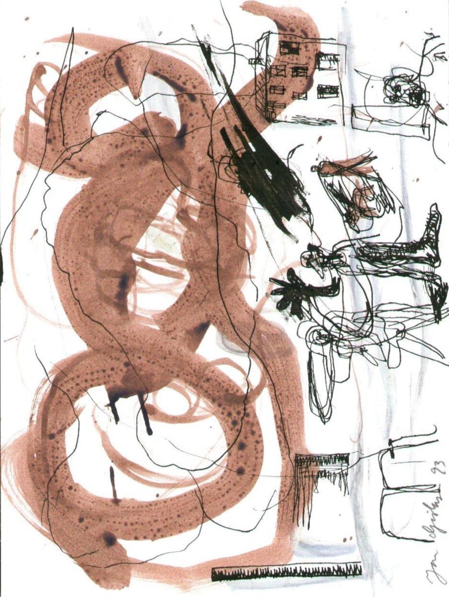 Gislason, Jon (1955-): Komposition. Aquarell/Tusche auf Papier. Signiert: Jon Gislason 98. 31,5 x 24 cm.