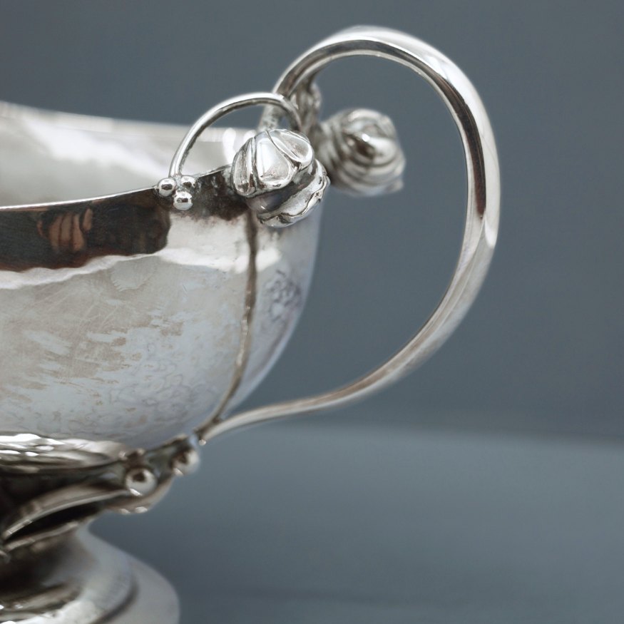 Sukkerskål og flødekande af hamret sterling sølv #235 B.
