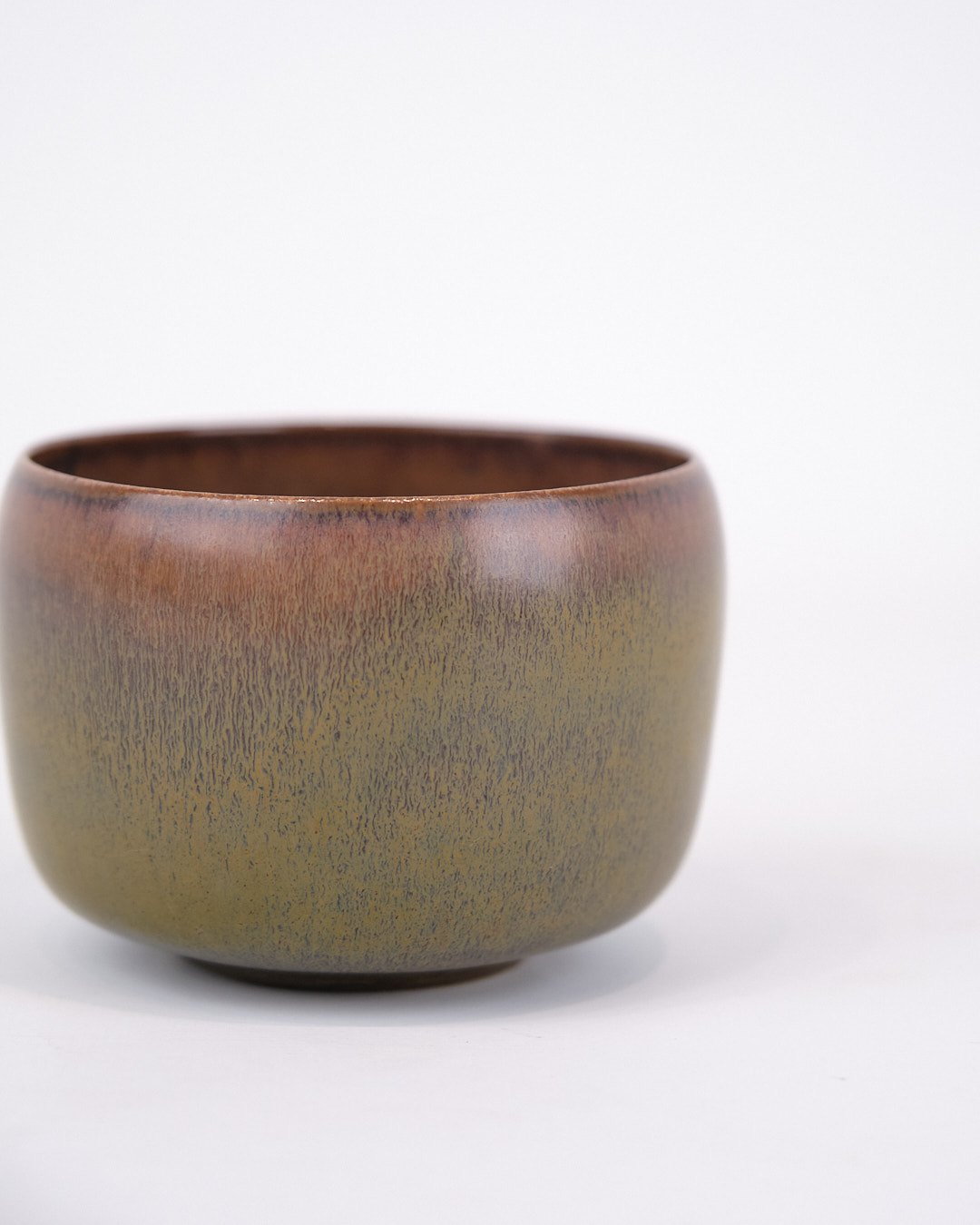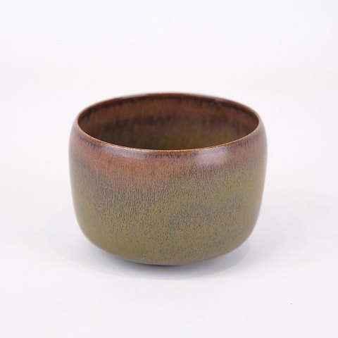 Text zugänglich auf Dänische: Saxbo skål nr. 25 af Eva Stæhr-Nielsen. Stentøj med brunlig glasur. Dansk design fra 1960’erne.