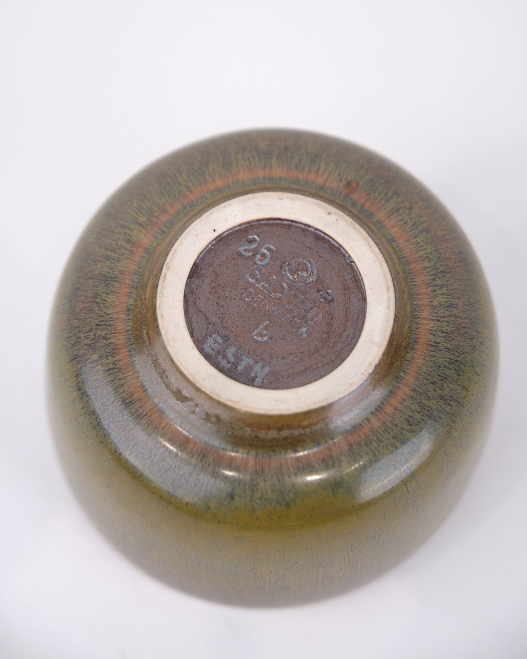 Text zugänglich auf Dänische: Lille Skål - Model Nr. 25 - Brunlig Glassur & Stentøj - Eva Staehr-Nielsen - Saxbo Danmark - 1960erne