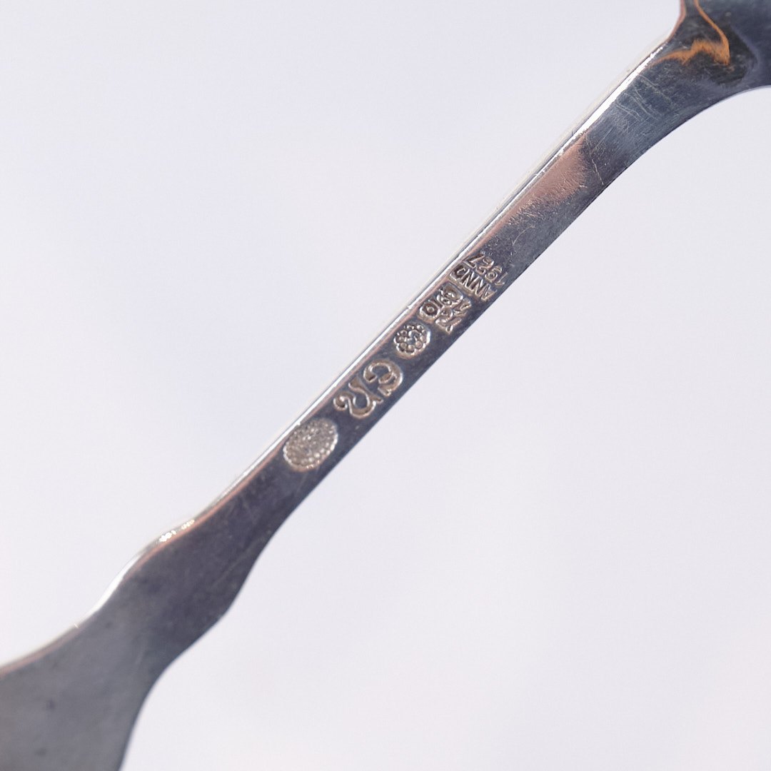 Text zugänglich auf Dänische: Teske i mønster nr. 18 af Evald Nielsen. Tretårnet sølv, stemplet.