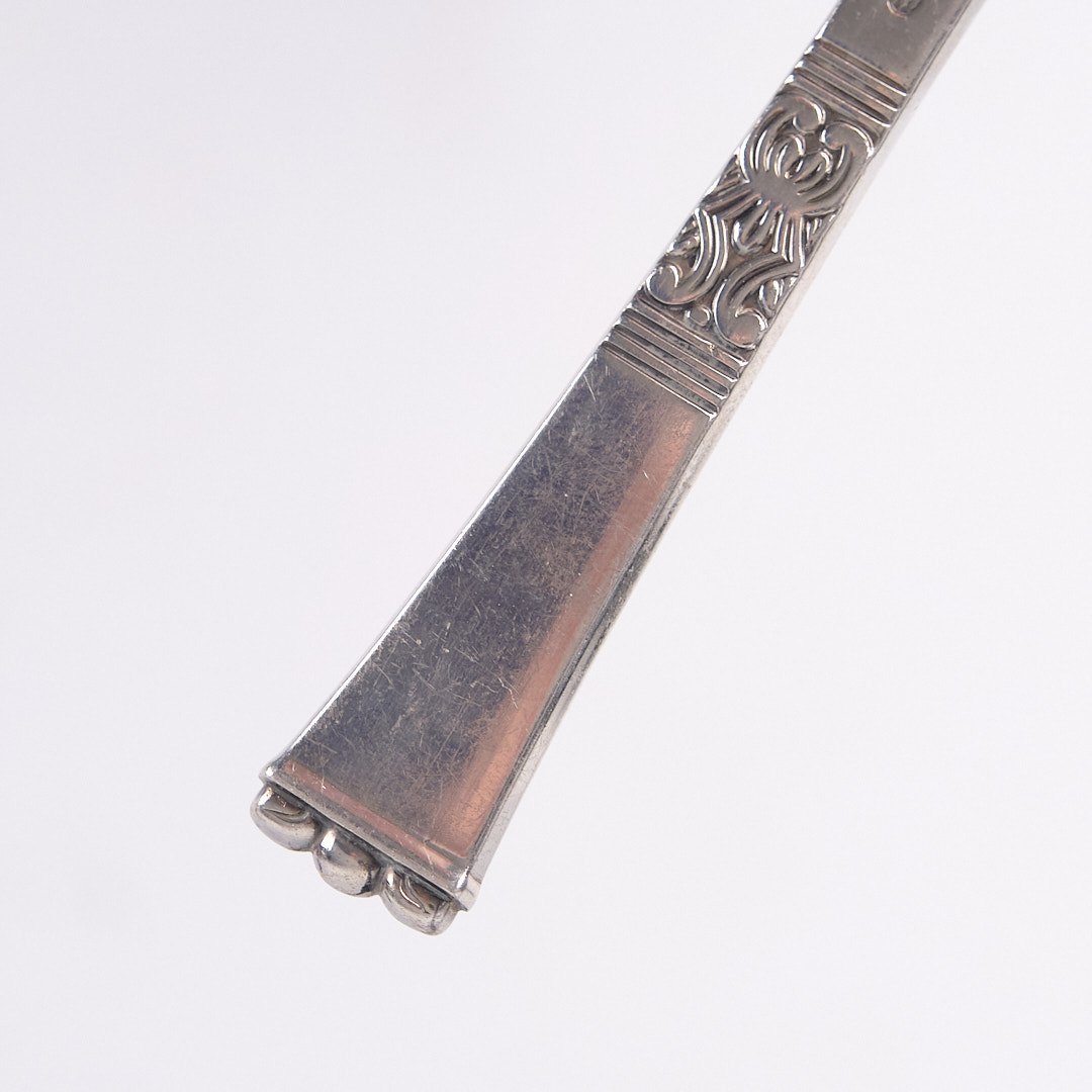 Poul Frigast smørkniv i rigsmønster. Sølv 830s, 1930’erne. Længde 16,5 cm. Klassisk dansk sølvarbejde.