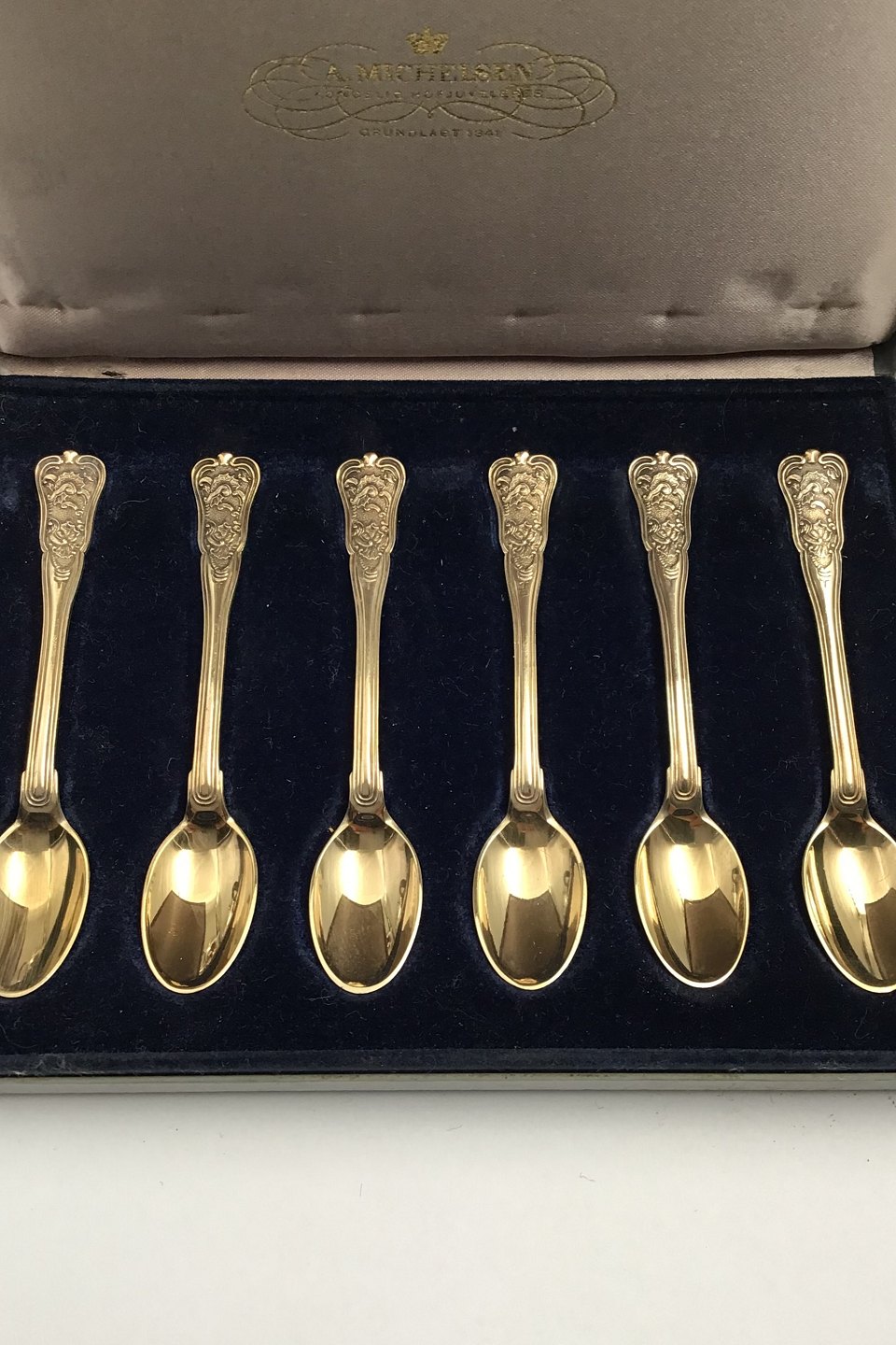 Anton Michelsen Sterling Sølv Rosenborg Moccaske Sæt (6) Forgyldt