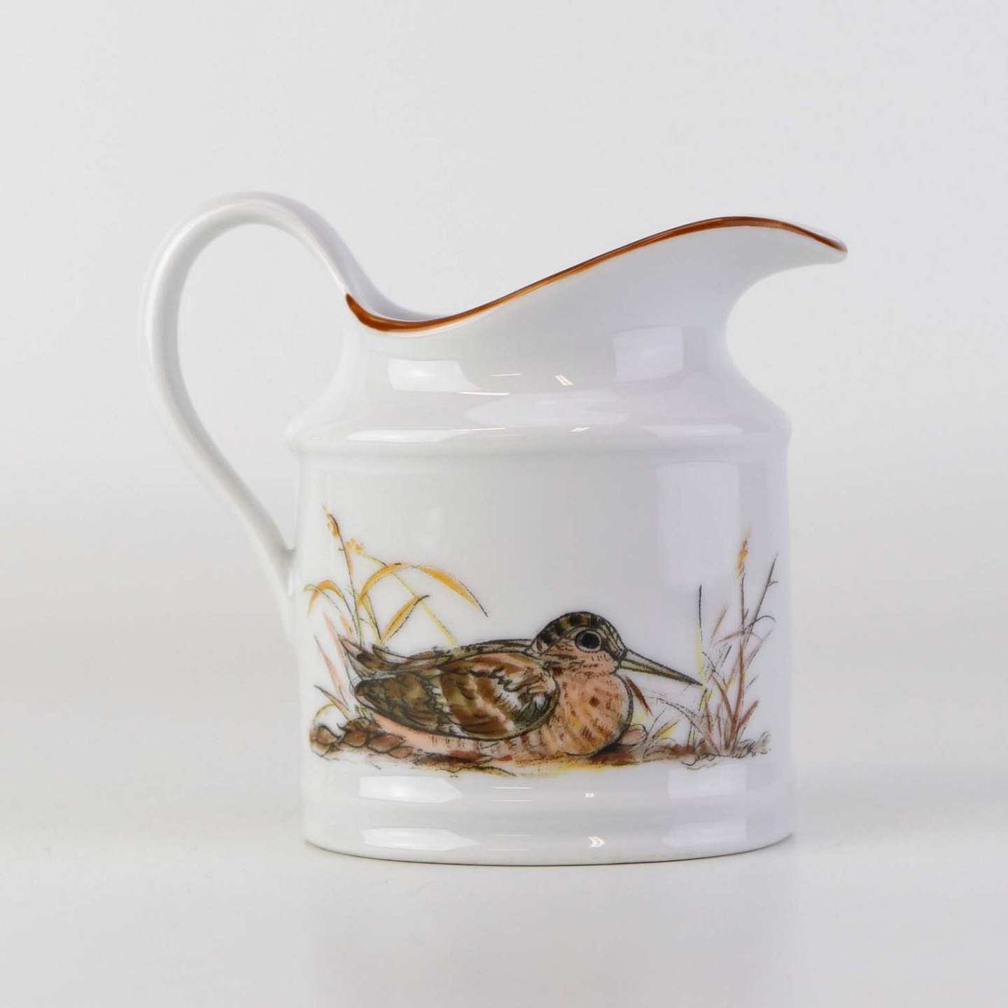 Text zugänglich auf Dänische: Kande til fløde i porcelæn med motiv af en sneppe fra stellet Jagtstel.