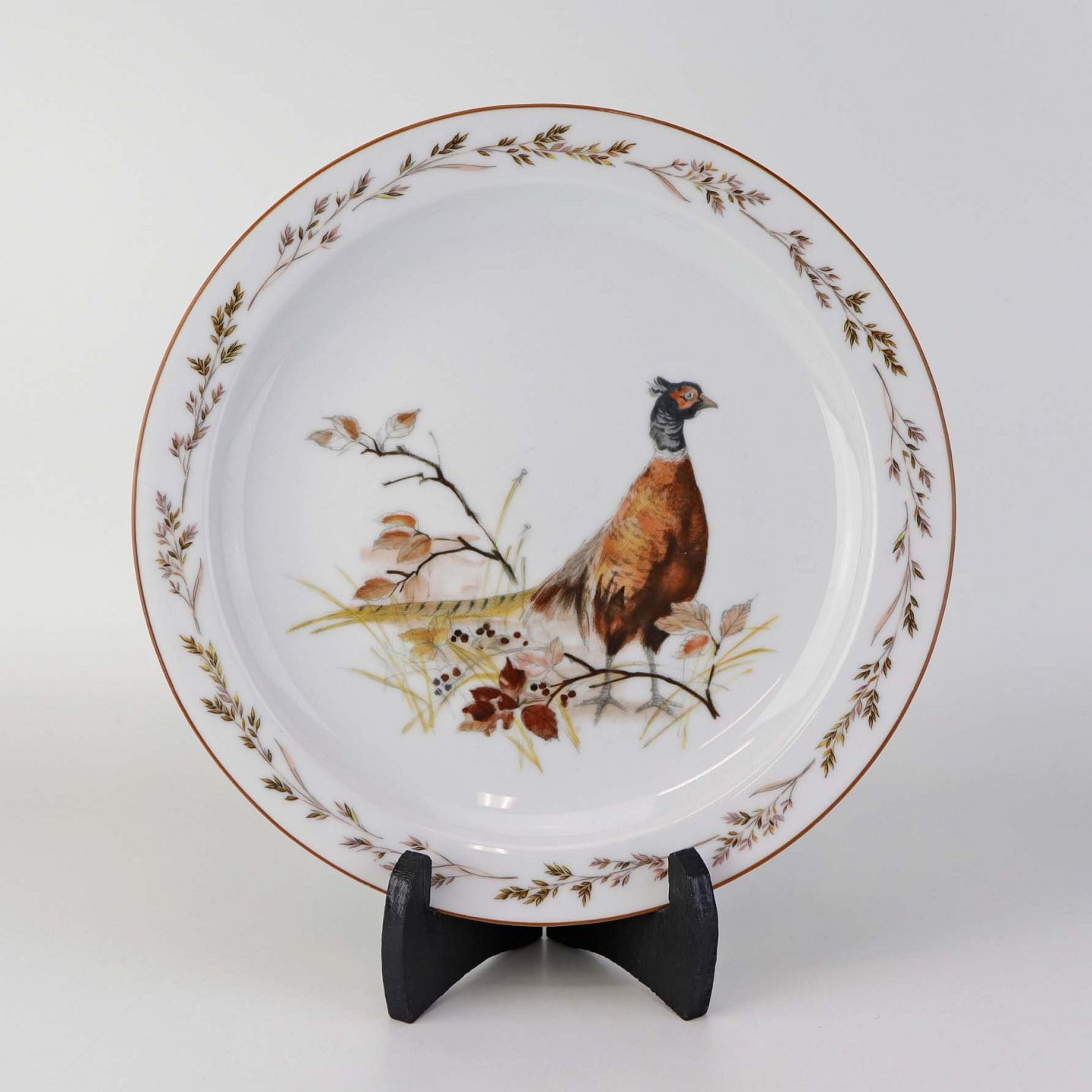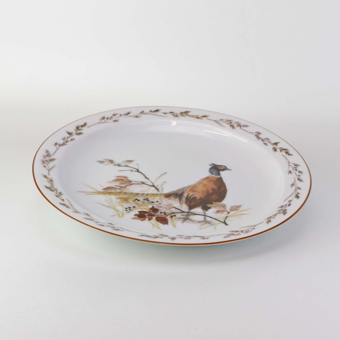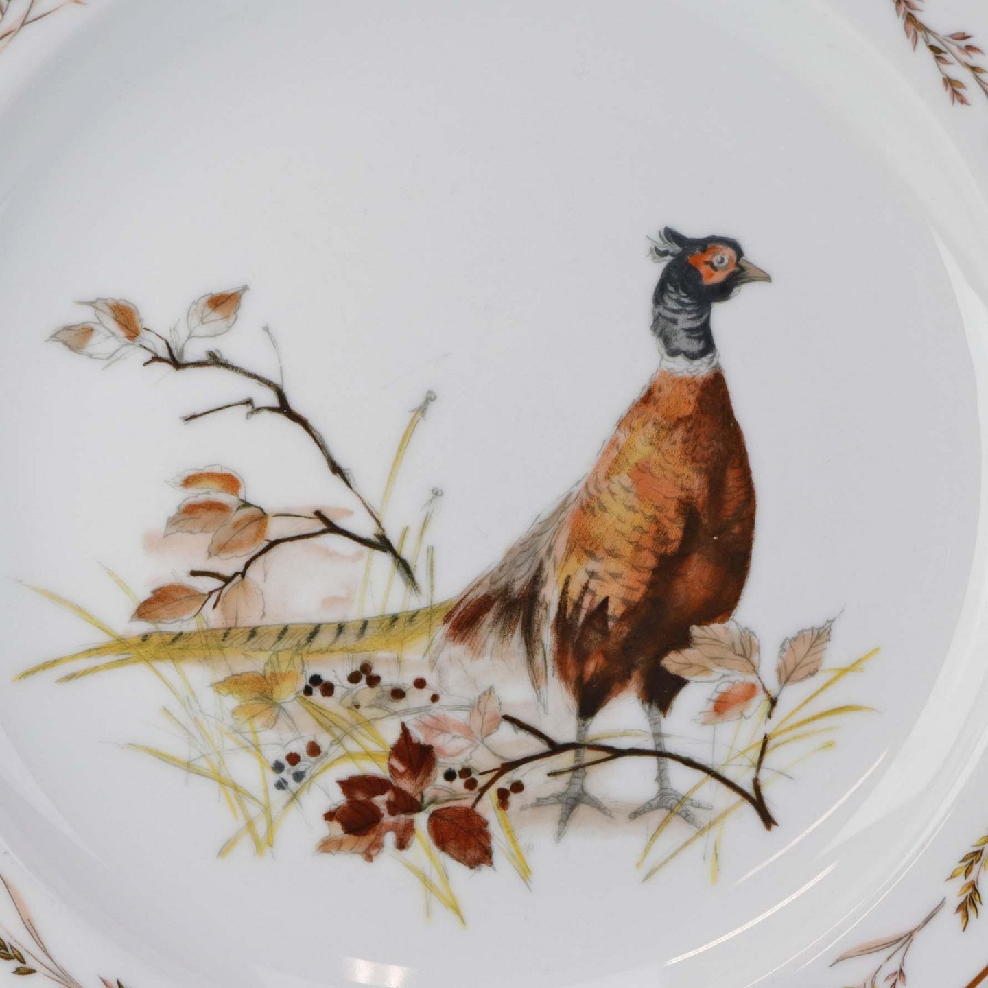 Text zugänglich auf Dänische: Flad middagstallerken i porcelæn med motiv af en fasan fra stellet Jagtstel.