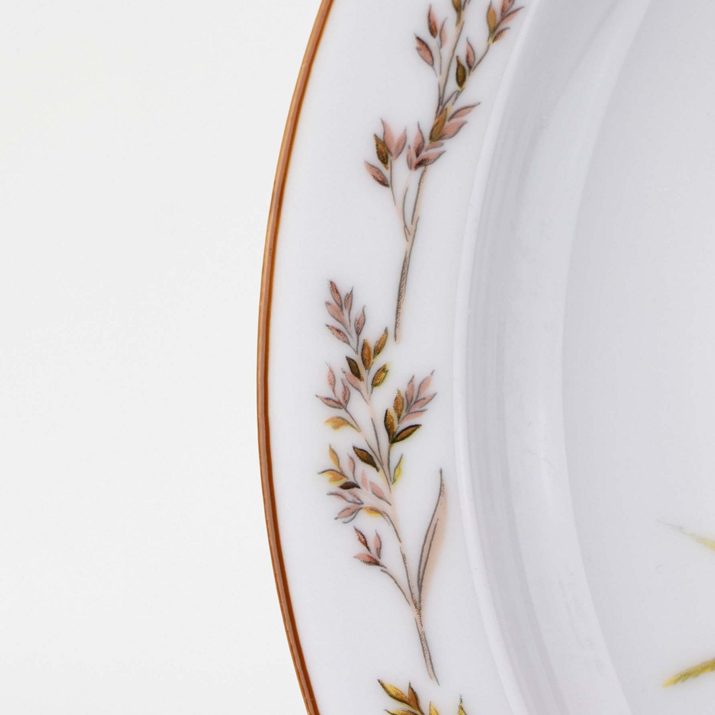 Jagtstellet er i glat hvidt porcelæn med gyldenbrun kantdekoration og motiver af forskellige vilde danske dyr i deres naturlige miljø. Stellet er holdt i dæmpede varme efterårsfarver.