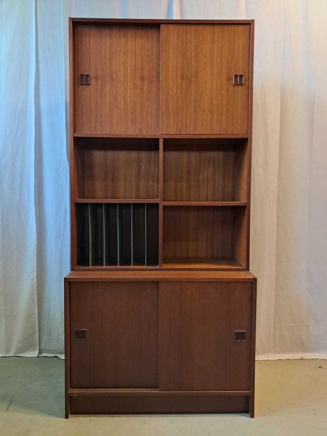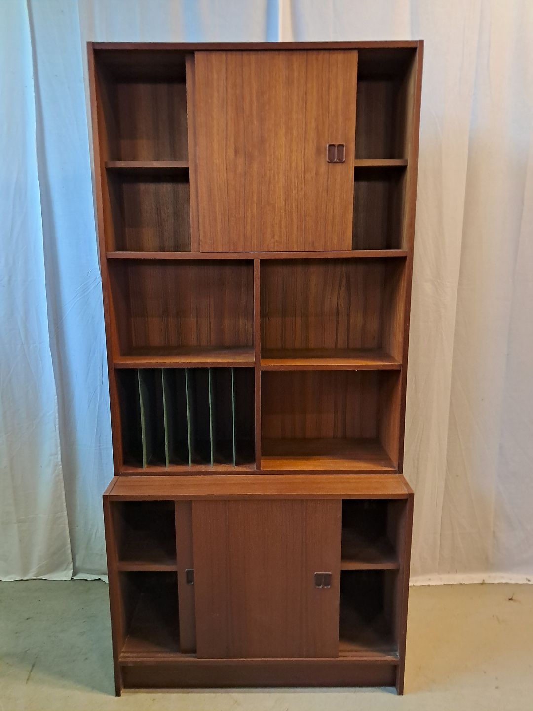 Reolsektion i fineret teaktræ, fra 1960erne.