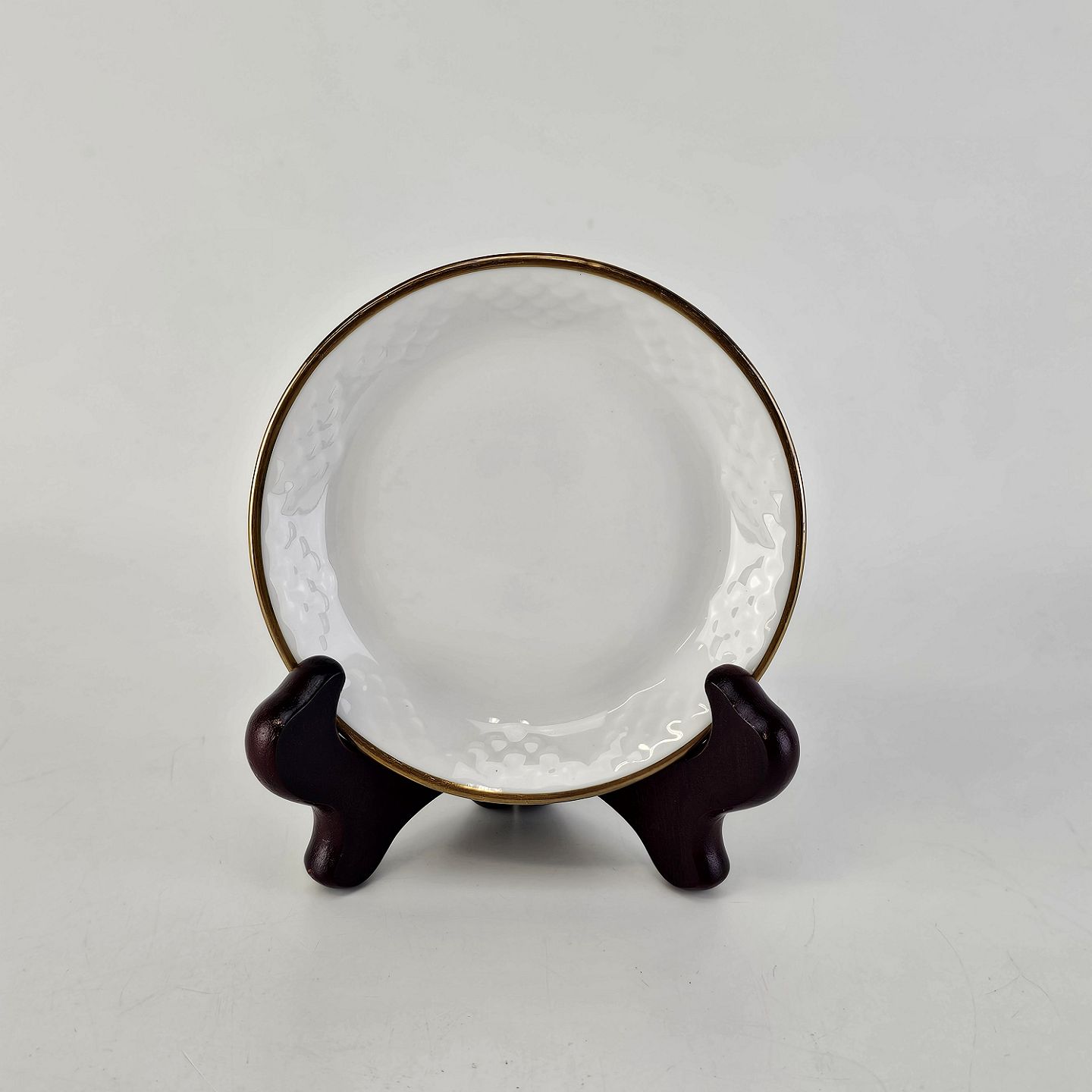 Hostrup er hvidt porcelæn i skælform med guldkant