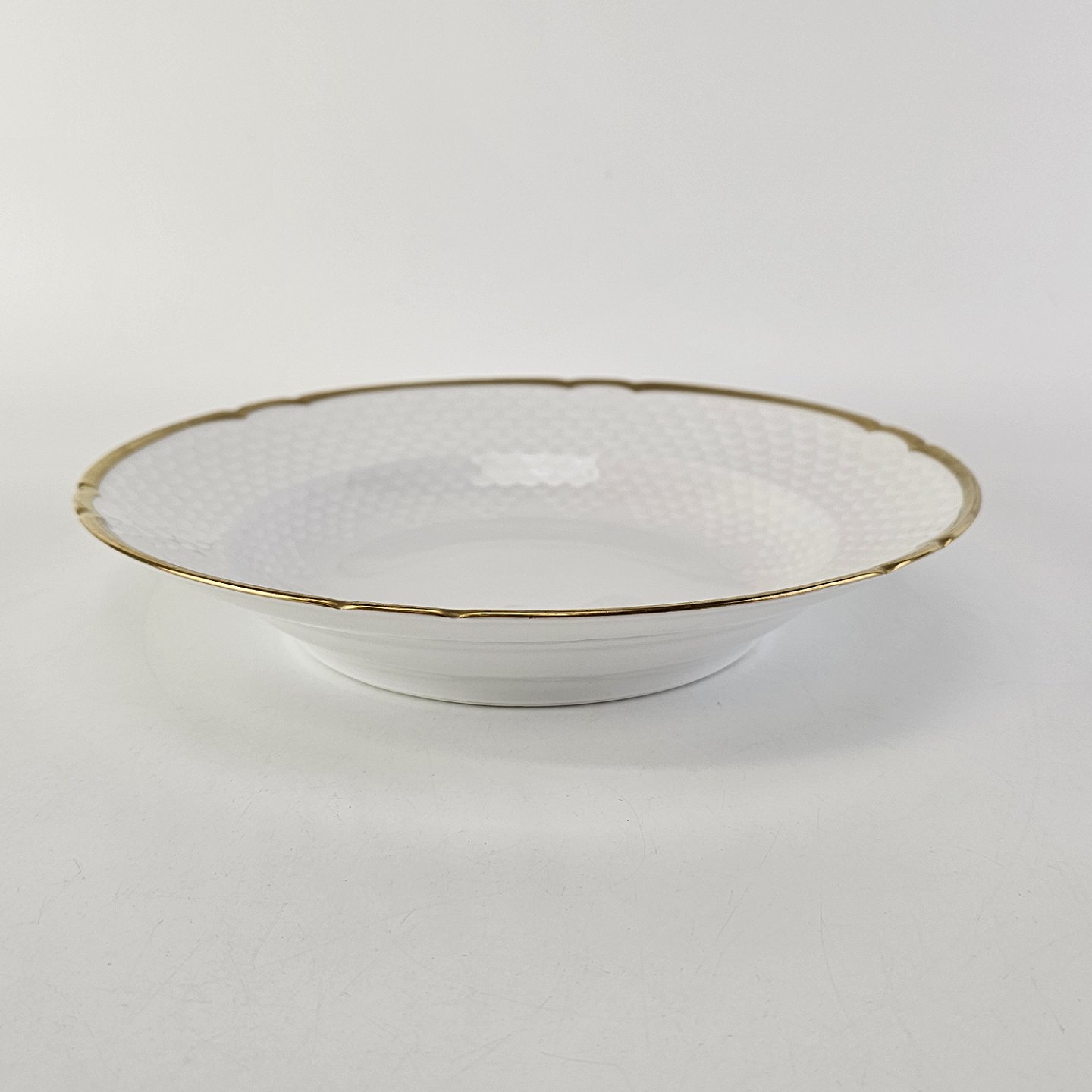 Hostrup er hvidt porcelæn i skælform med guldkant