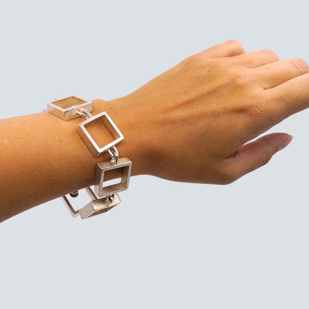Hans Hansen; A bracelet made of sterling silver. Shaped like squares. From around 1960.