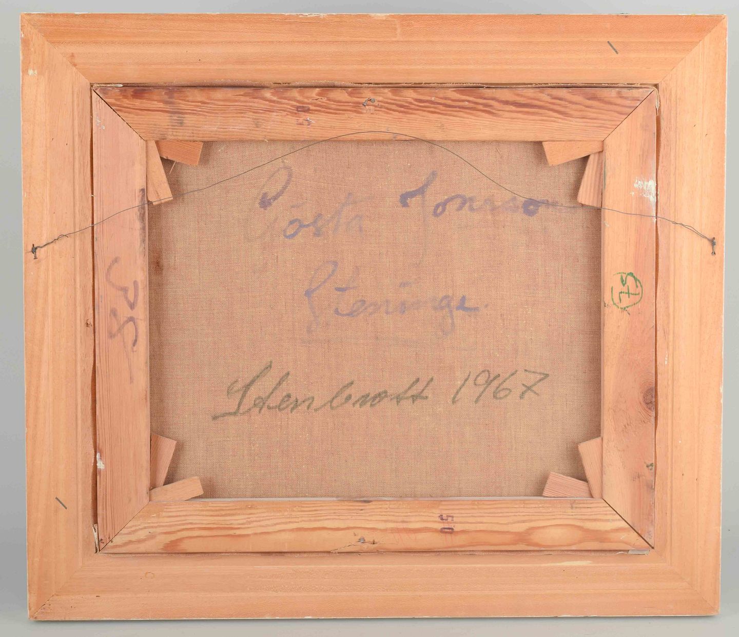 Et ekspressivt abstrakt maleri med kraftfulde penselstrøg og dybe grønne, blå og jordagtige toner, hvor strukturen i farvelagene skaber en levende og dramatisk overflade.