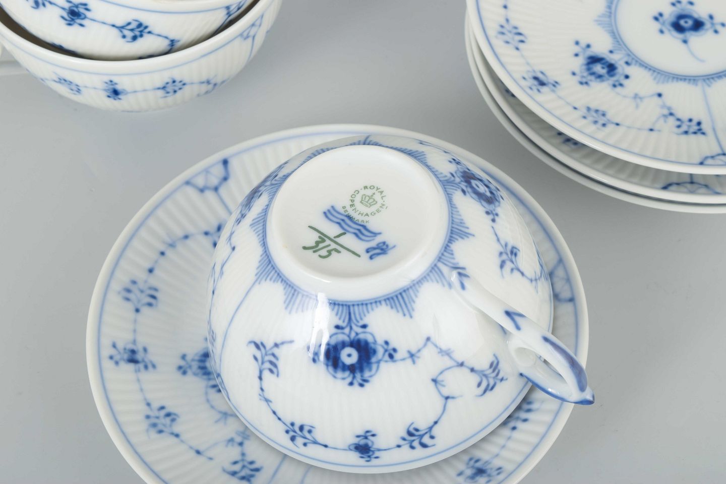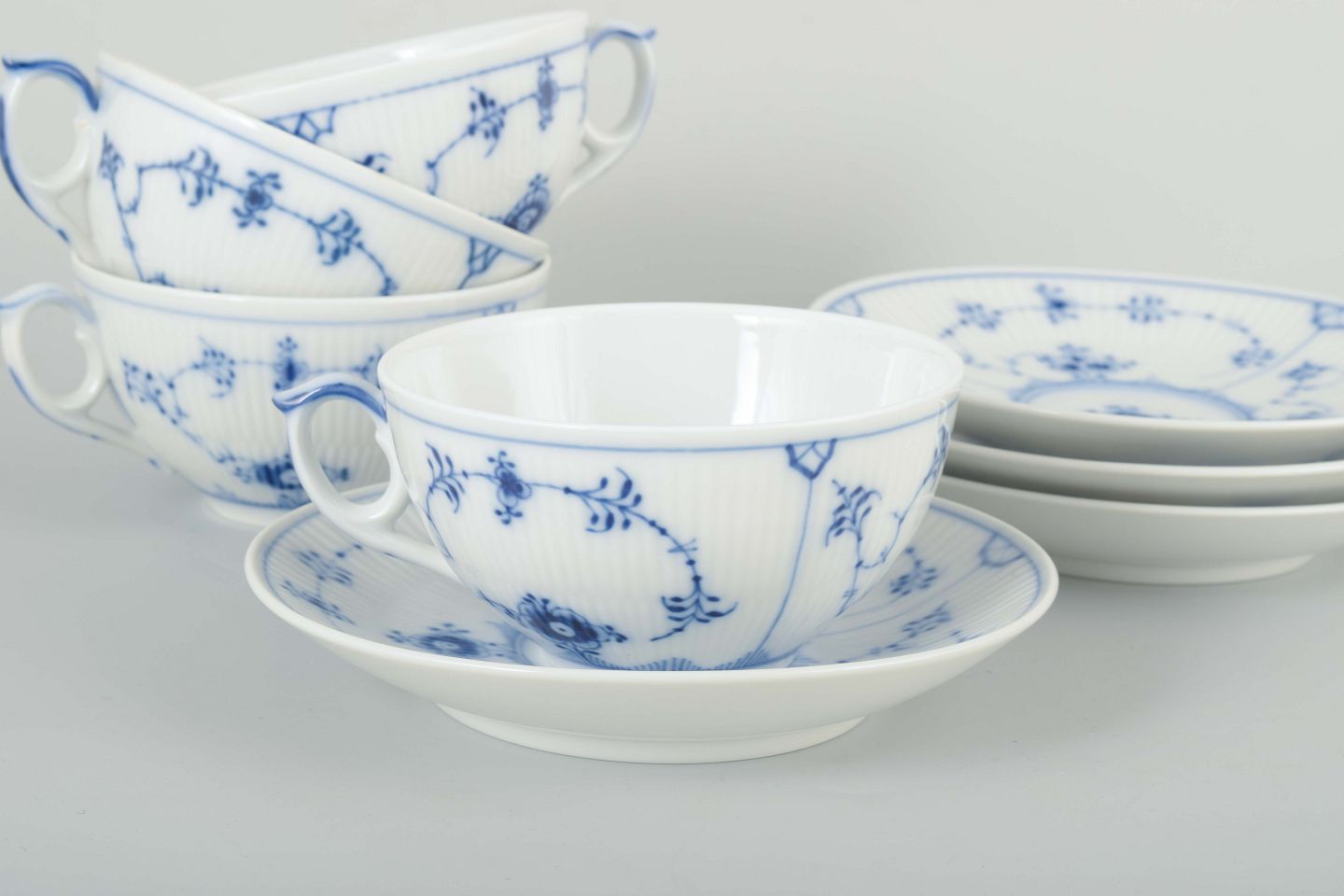 Blue Fluted Plain, tea cups with saucers, late 20th century.