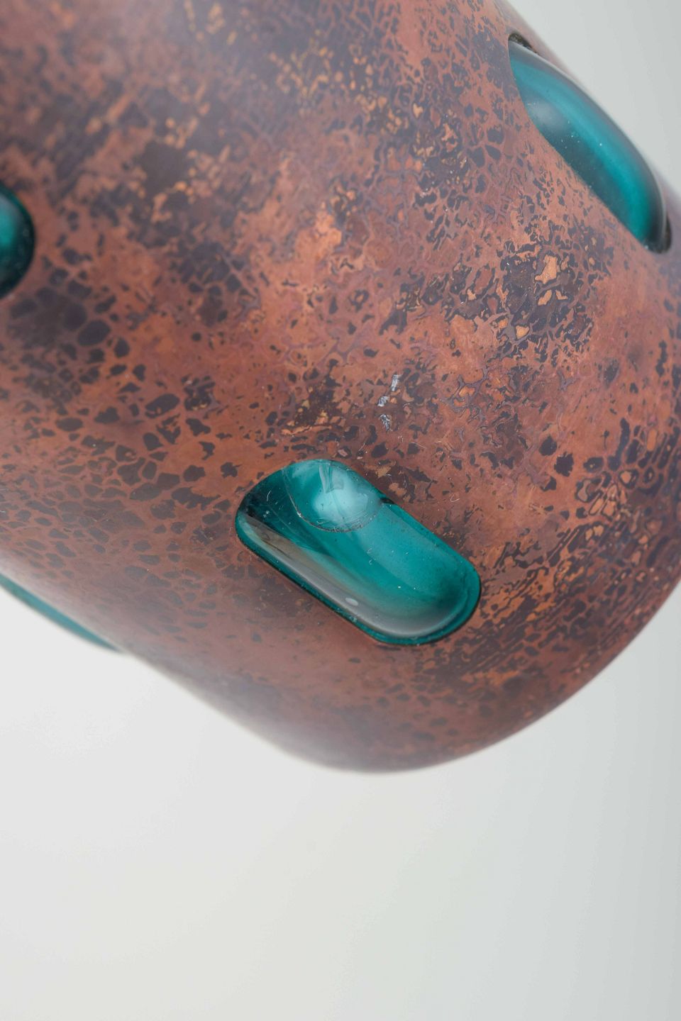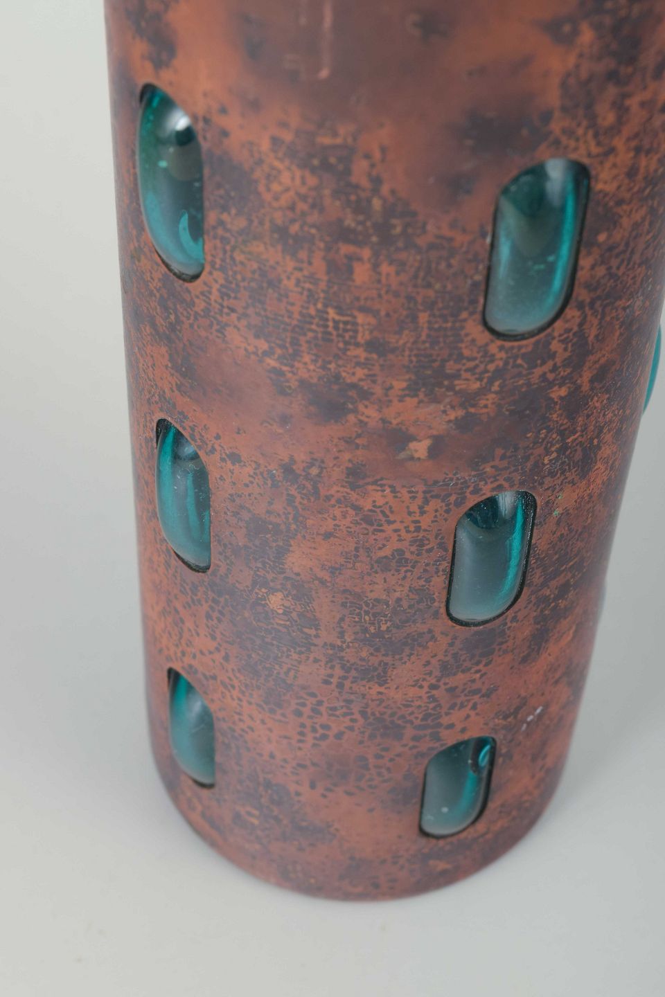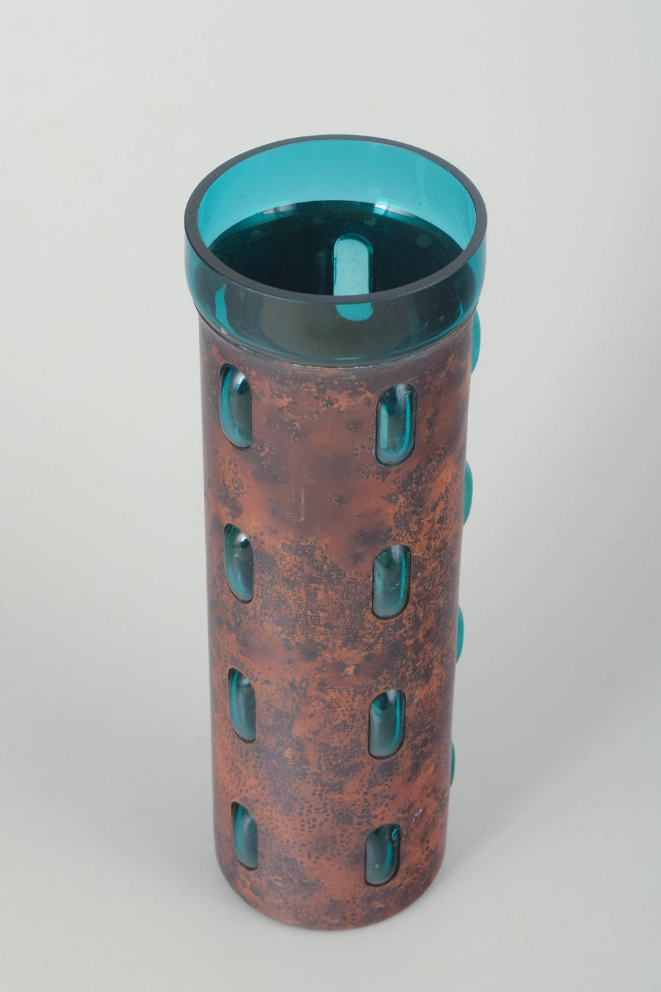 Vase i kobber og glas. Midten af 1900-tallet.