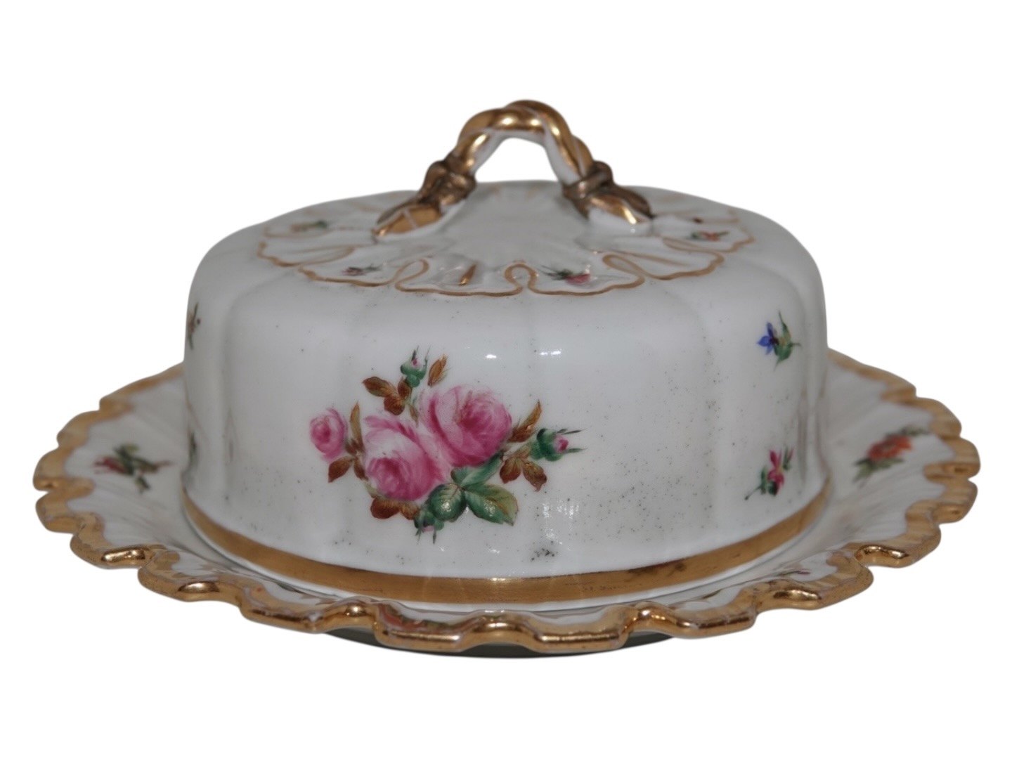 Royal Copenhagen Saksisk Blomst, sjælden smørskål på fast underfad.