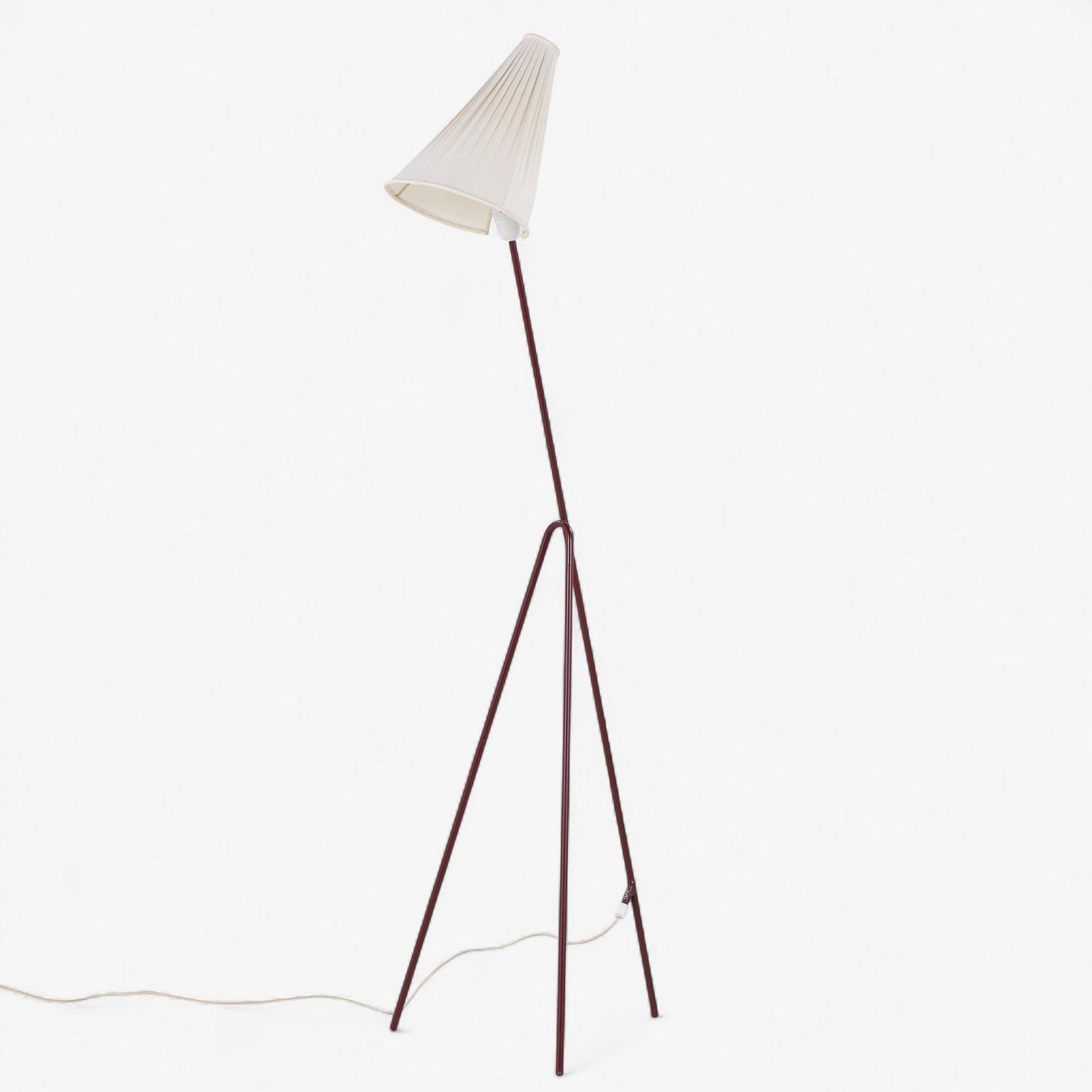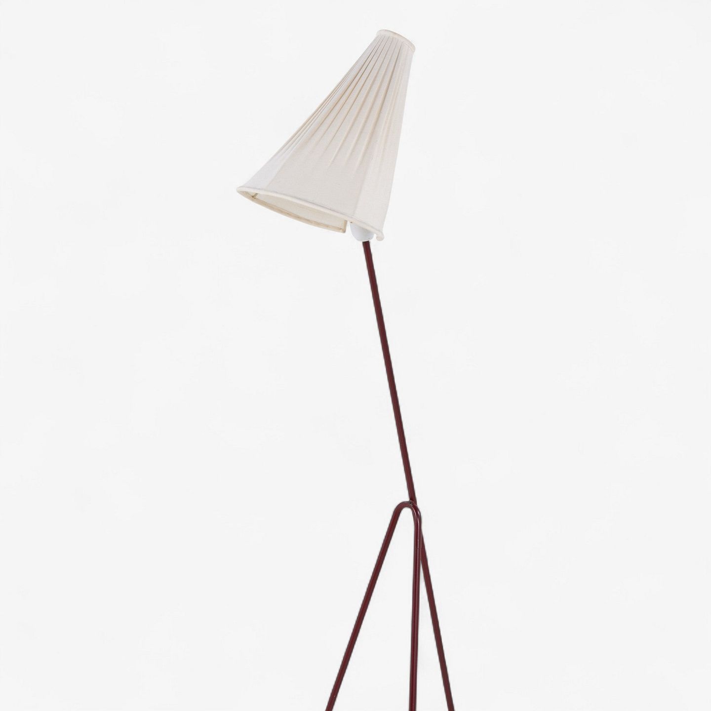Model 569 - 'Giraffen'-gulvlampe med stel i patineret rødlakeret metal og hvid stofskærm.
