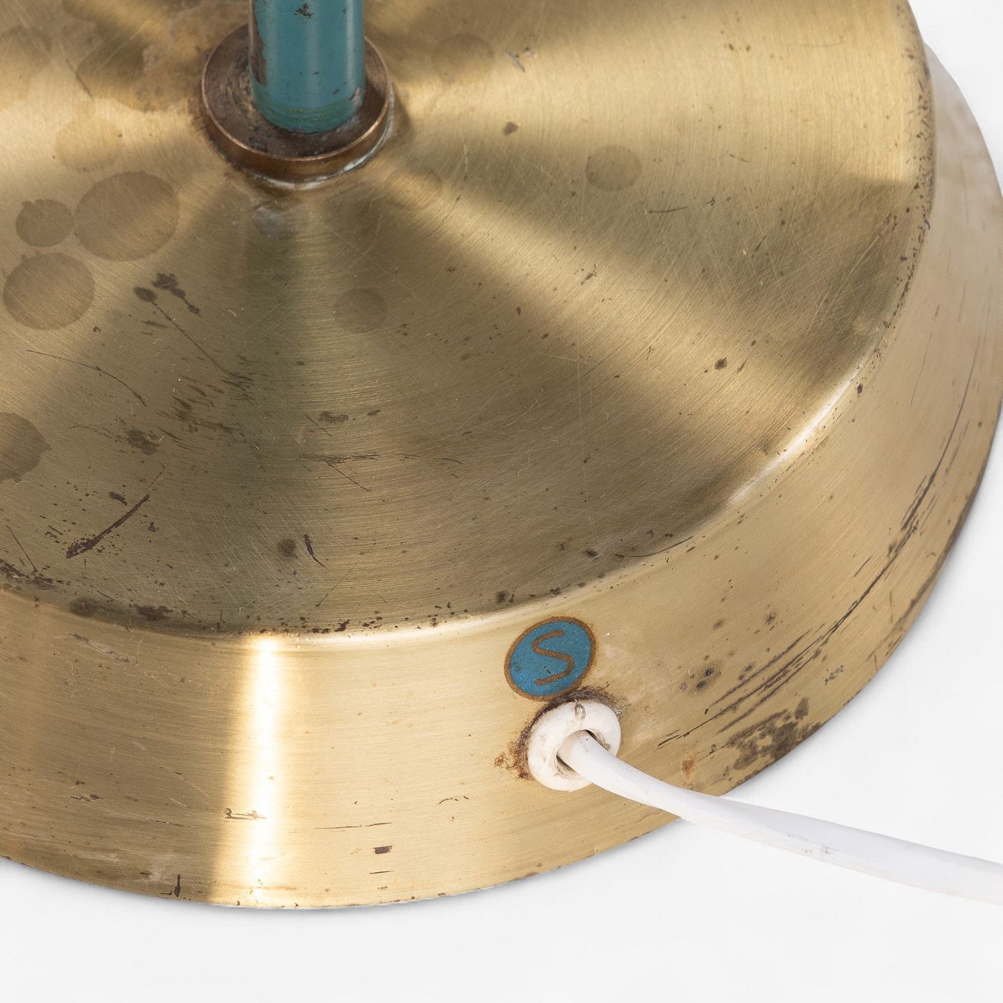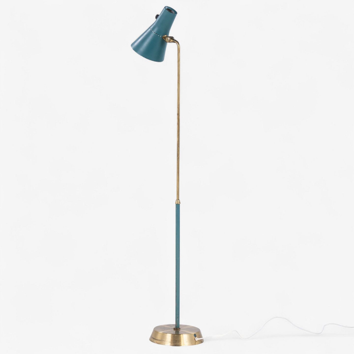 Model KLK 2851 - Gulvlampe i patineret messing og grønlakeret metal.