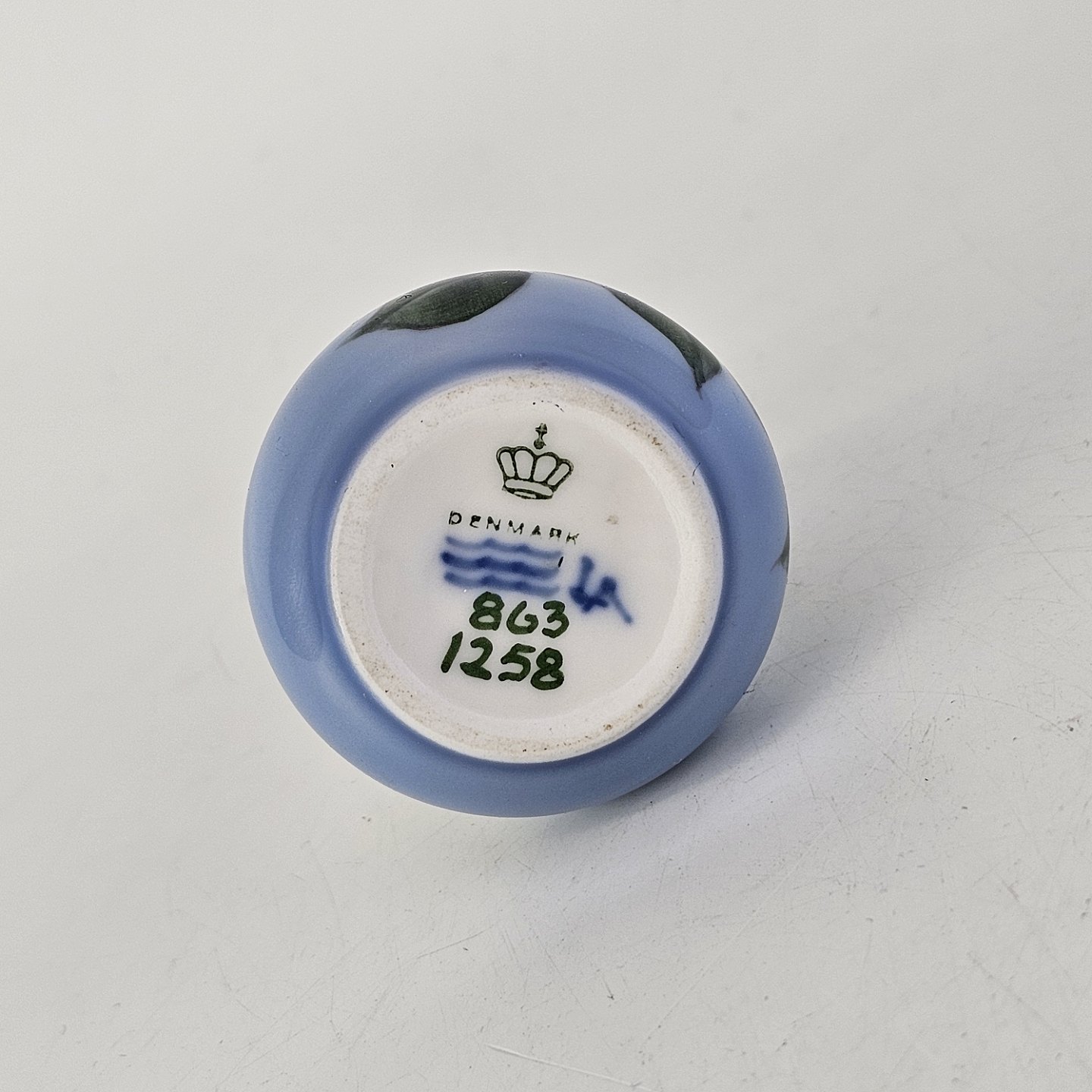 Miniature vase i porcelæn med motiv af en æbleblomst på gradueret blå baggrund