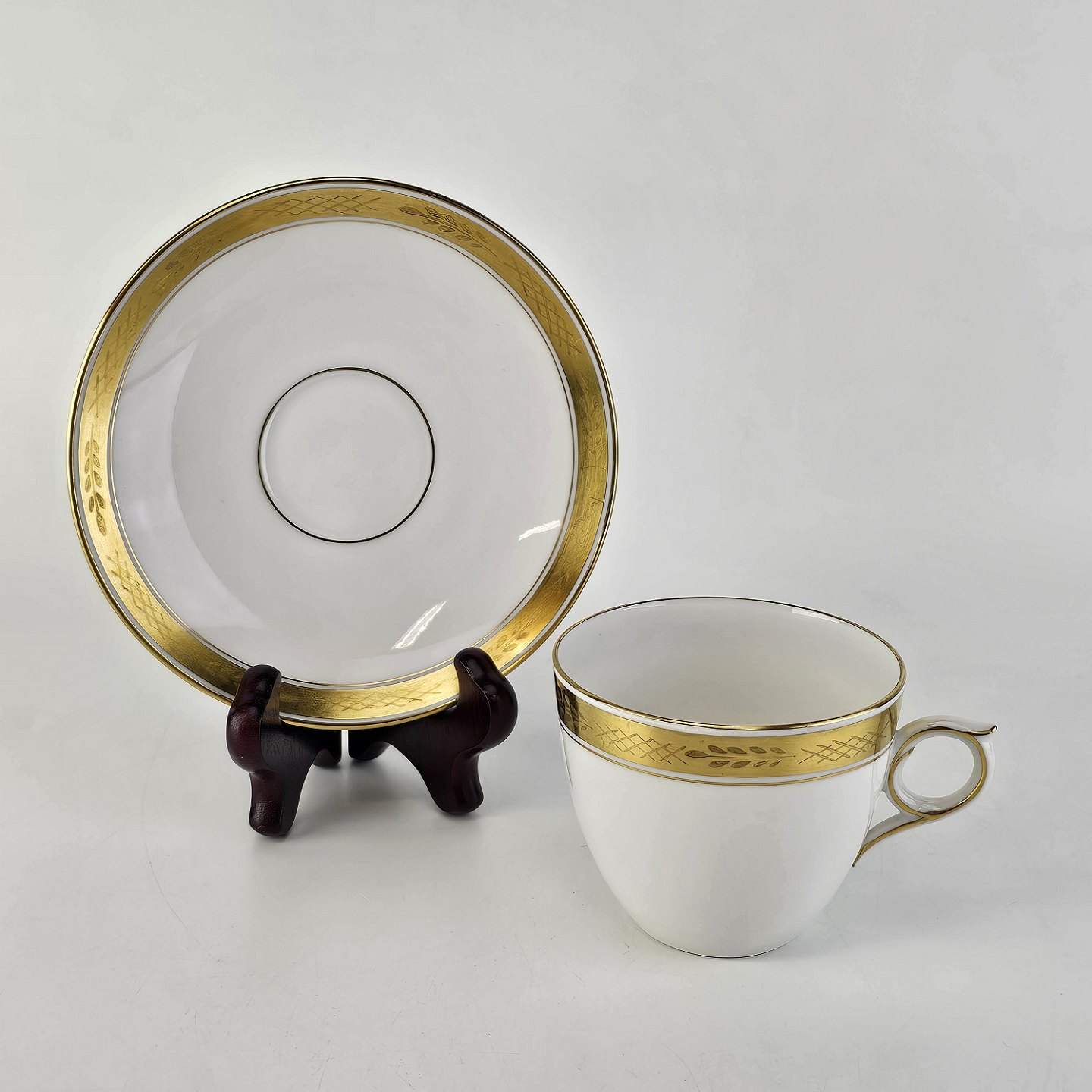Stel nr. 607 er i hvidt porcelæn og har en guldkant med bladværk