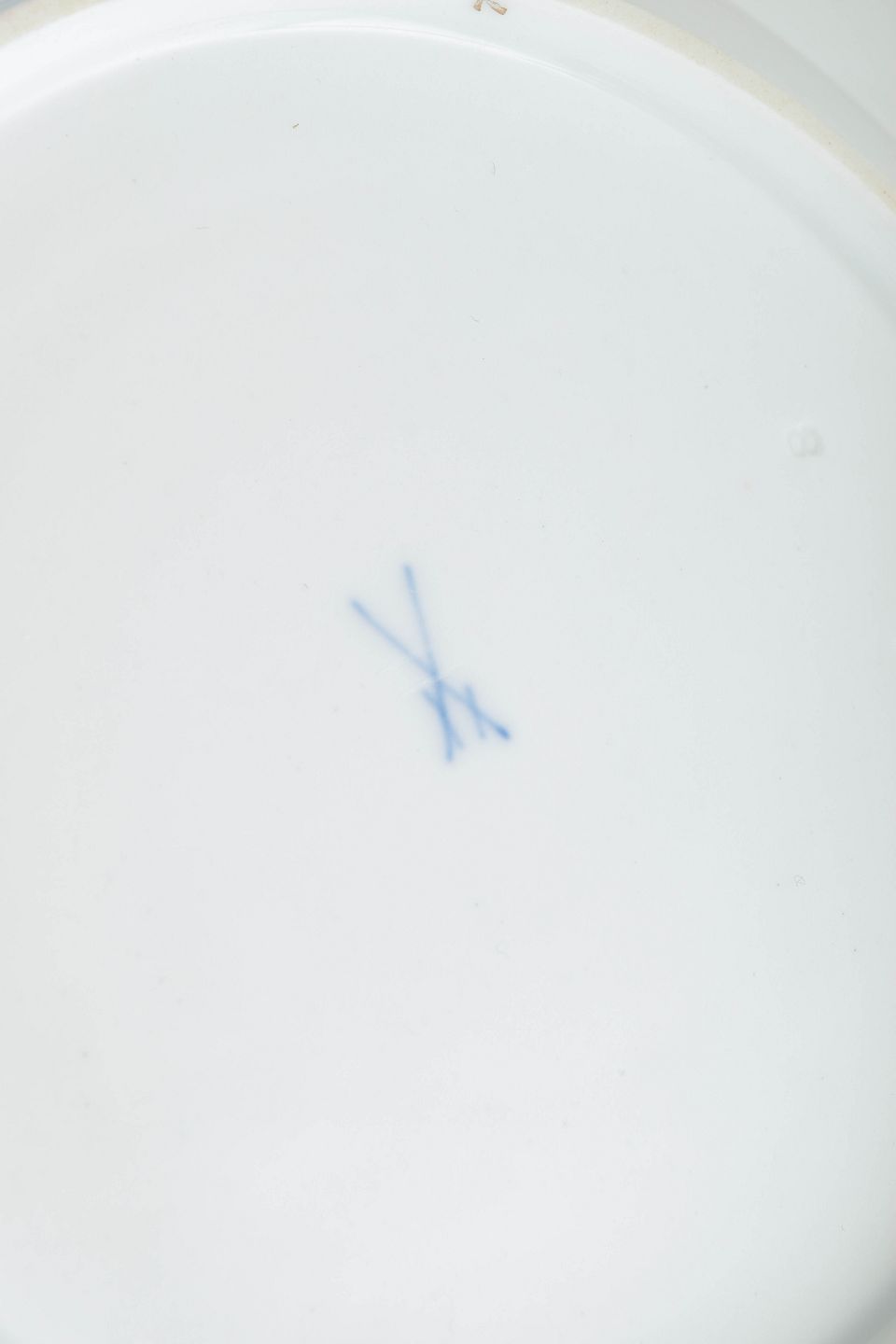 Meissen har siden 1710 været en af Europas førende porcelænsfabrikker, kendt for håndmalede dekorationer og udsøgt kvalitet. I det tidlige 20. århundrede eksperimenterede fabrikken med variationer af de klassiske blomster- og frugtmotiver, ofte i klare farver som lilla, grøn og pink, hvilket gør stykkerne både dekorative og samlerværdige i dag.